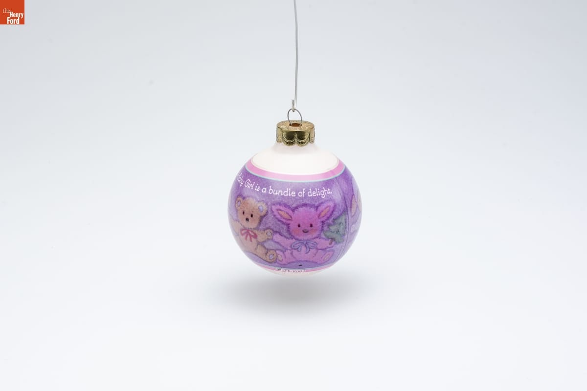 Already known for greeting cards, Hallmark introduced a line of Christmas ornaments in 1973. The company's annual release of an increasing array of ornaments appealed to customers' interest in marking memories and milestones as well as expressing one's personality and unique tastes. Purchasing an ornament like this one would bring back happy family memories of that event year after year.