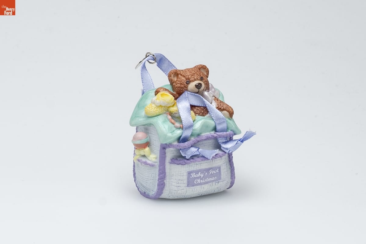 Already known for greeting cards, Hallmark introduced a line of Christmas ornaments in 1973. The company's annual release of an increasing array of ornaments appealed to customers' interest in marking memories and milestones as well as expressing one's personality and unique tastes. Purchasing an ornament like this one would bring back happy family memories of that event year after year.