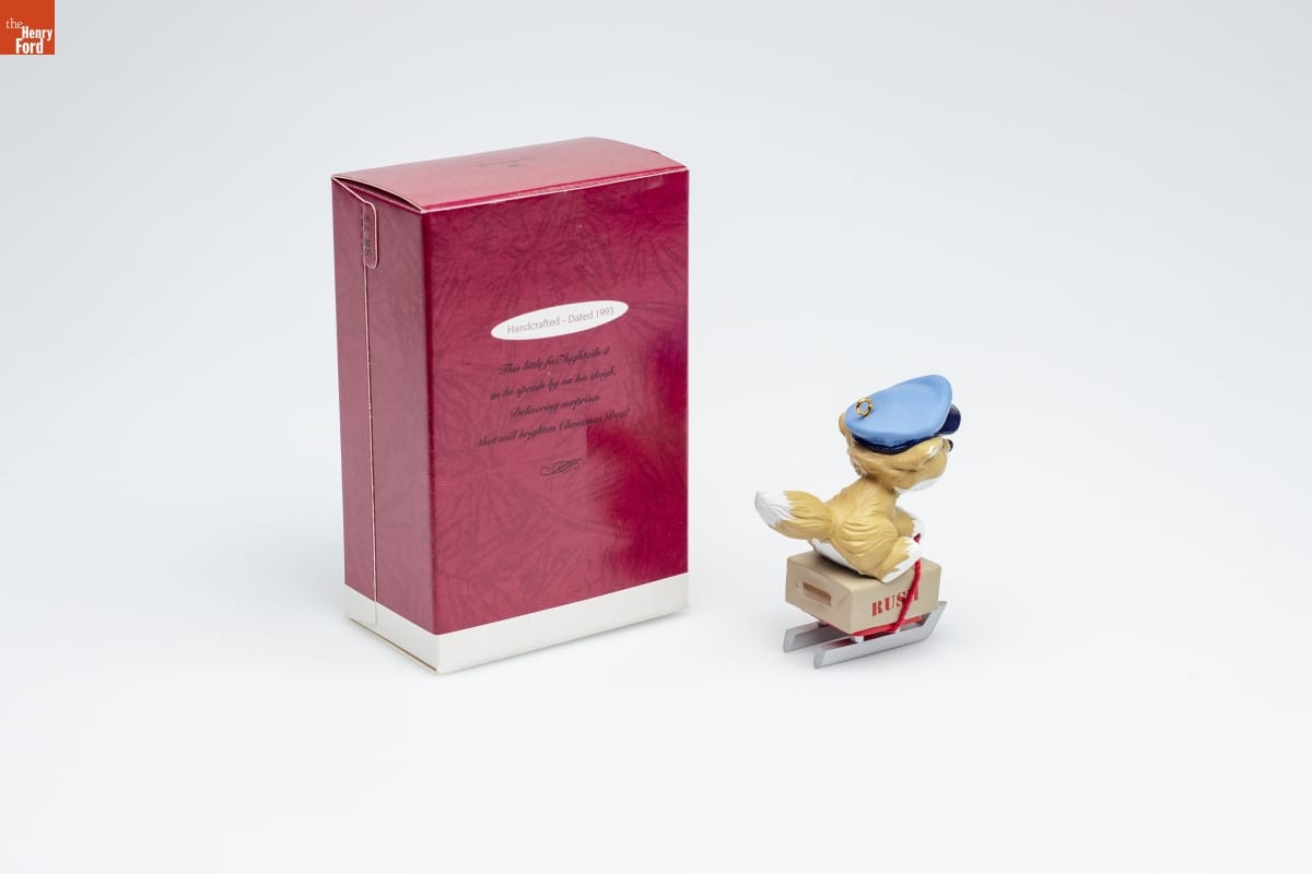 Handcrafted - Dated 1993 / This little fox hightails it / as he speeds by on his sleigh, / Delivering surprises / that will brighten Christmas Day!