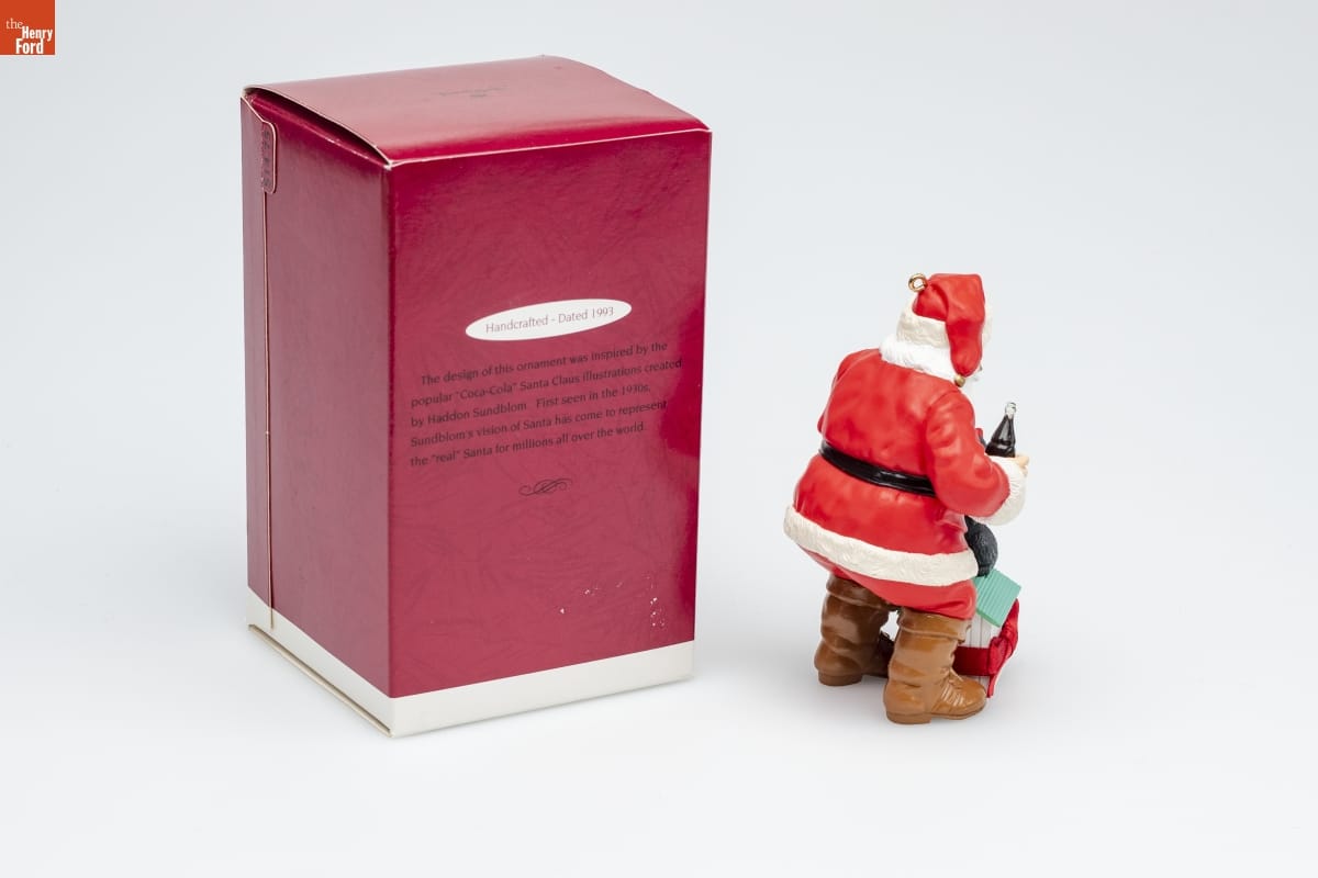 Handcrafted - Dated 1993 / The design of this ornament was inspired by the / popular "Coca-Cola" Santa Claus illustrations created / by Haddon Sundblom. First seen in the 1930s, / Sundblom's vision of Santa has come to represent / the "real" Santa for millions all over the world.