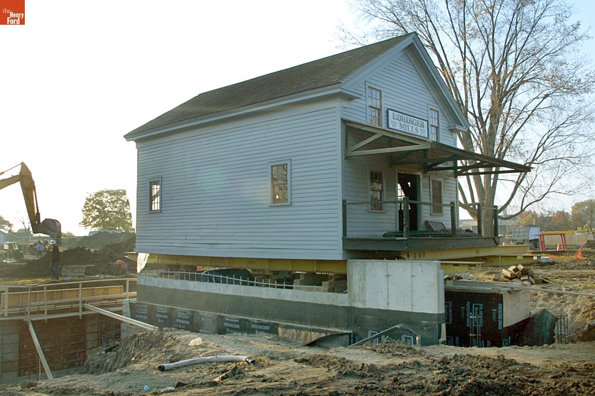 Loranger Gristmill at Relocation Site during the Greenfield Village Restoration Project, November 2002