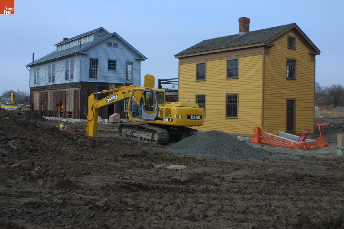 Soybean Lab Agricultural Gallery and Richart Wagon Shop at Relocation Sites during the Greenfield Village Restoration Project, November 2002