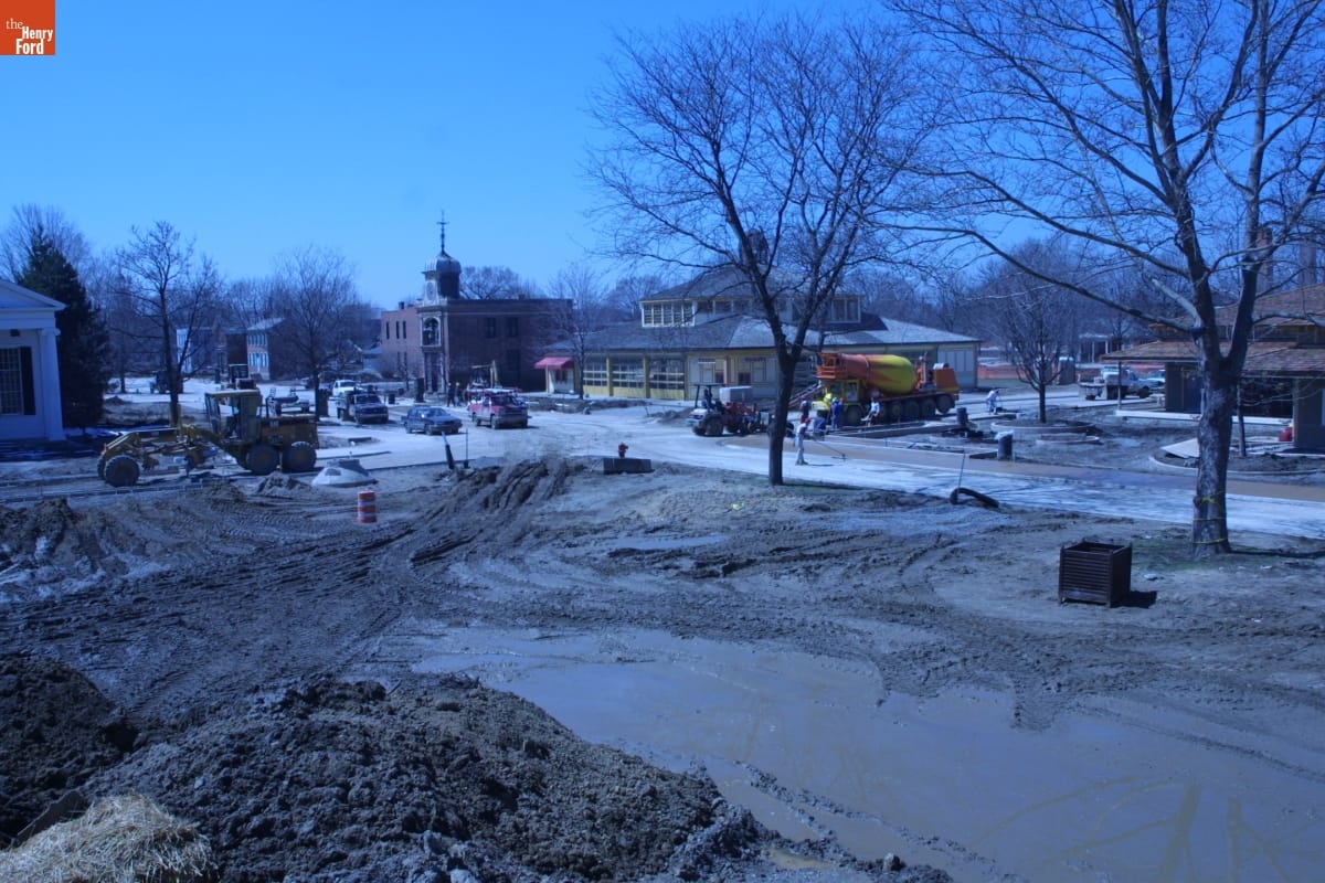 Paving Christie Street during the Greenfield Village Restoration Project, April 2003