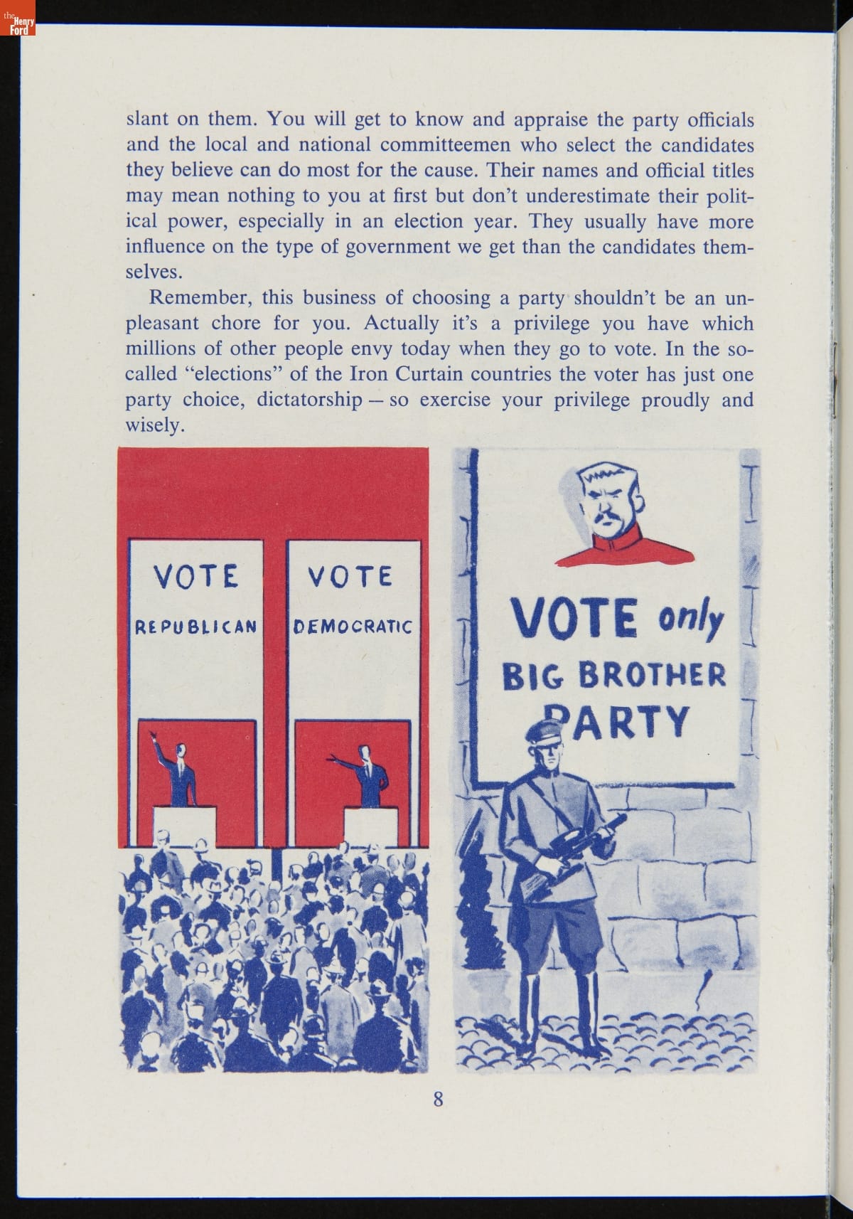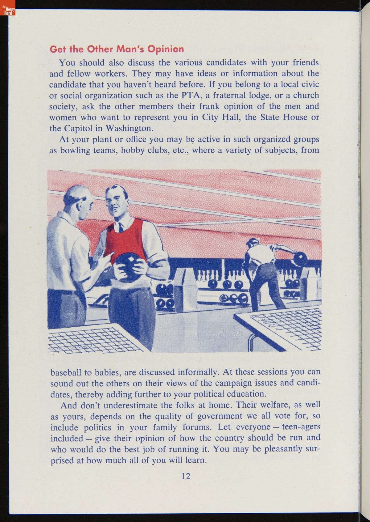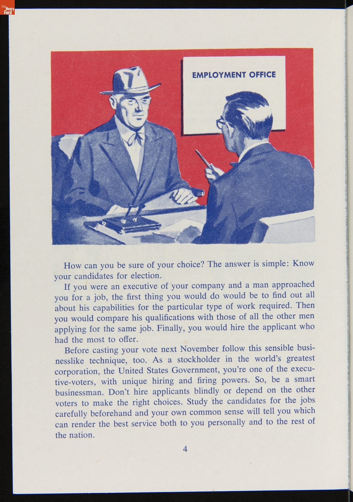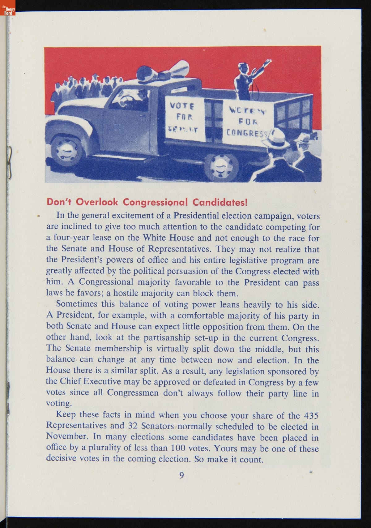 The success of the democratic process depends on voter participation. Organizations of all kinds have work to inform voters and stimulate turnout on election day. This booklet included key information to prepare voters and encourage participation in the 1956 presidential election.