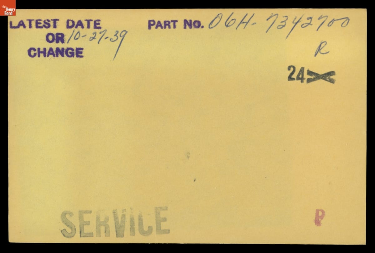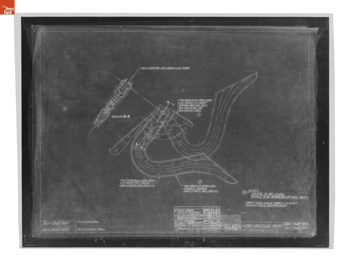 The Ford Motor Company created over a million parts drawings from 1903 to 1957. Many of these drawings specify engineering requirements for the components of Ford-made vehicles--including automobiles, trucks, tractors, military vehicles and Tri-motor airplanes. Others document assembly components, stages of casting and forging, or experimental designs. Beginning in the 1940s, Ford transferred the drawings to microfilm.