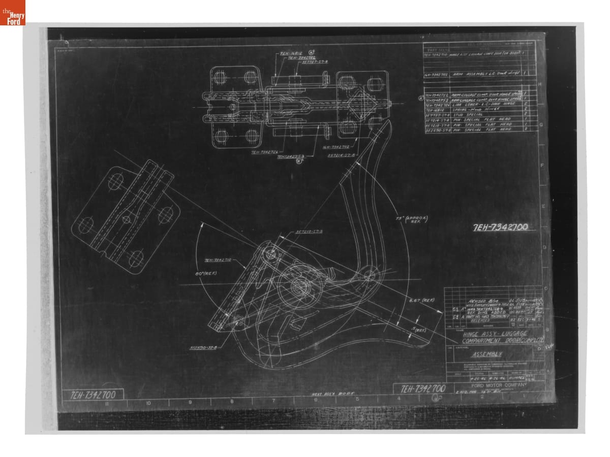 Drawing, "Hinge Ass'y - Luggage Compartment Door (Complete)," Ford/Lincoln Automobile, October 13, 1948
