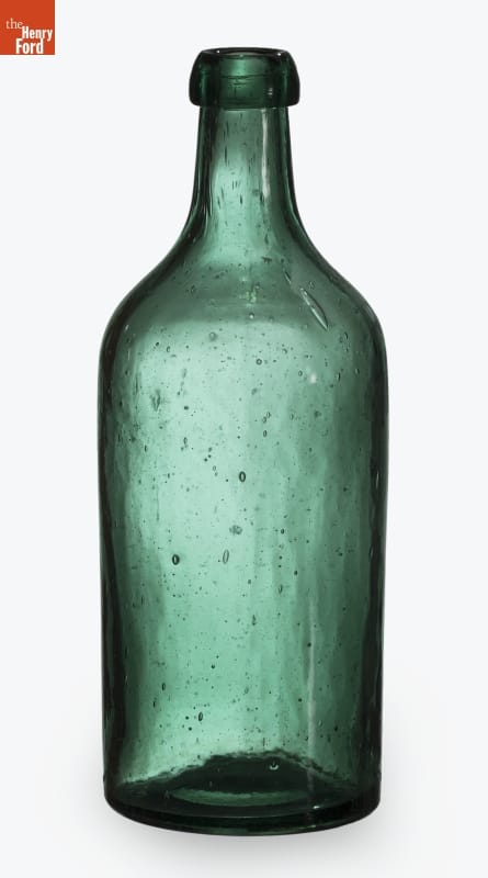 Bitters is an herb-infused alcoholic mixture. Named for its bitter taste, the liquid was originally developed as a medicinal tonic to help soothe stomach complaints or other digestive disorders. During the late 19th and early 20th centuries, patent-medicine dealers bottled and sold the elixir. Americans purchased bitters in simple mold-blown bottles or ones shaped like drums, barrels, or cabins.