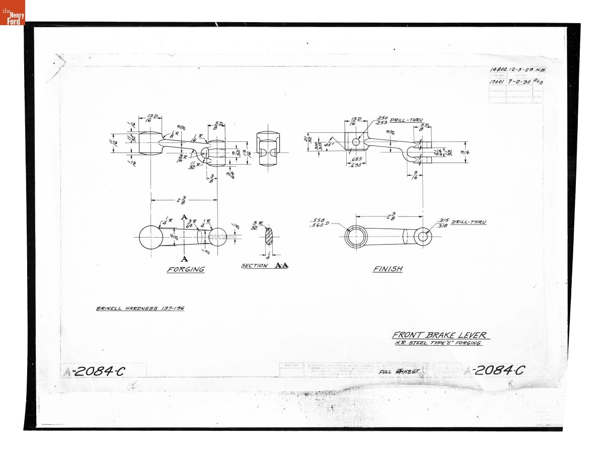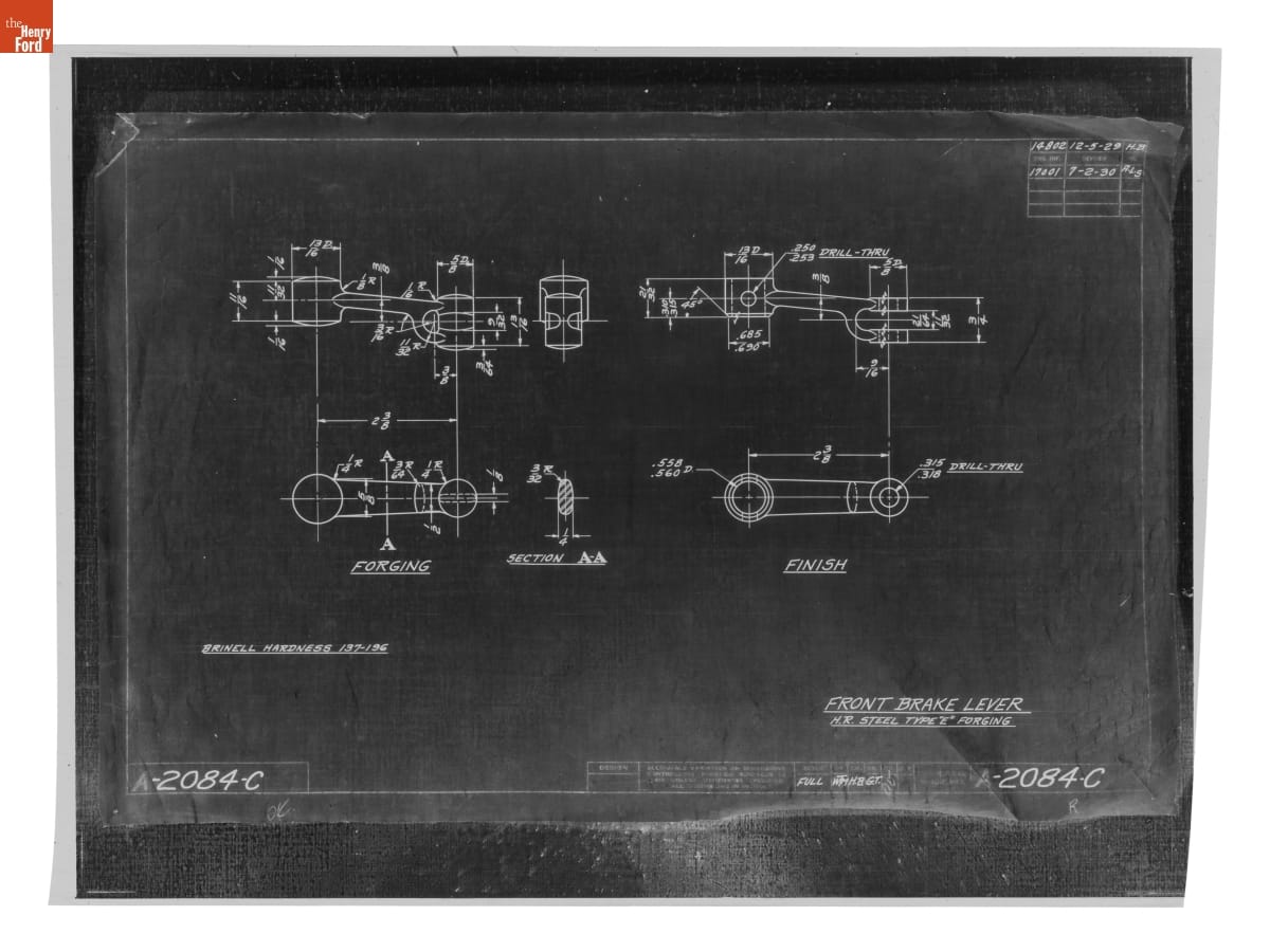 Drawing, "Front Brake Lever," Ford Model A, July 2, 1930