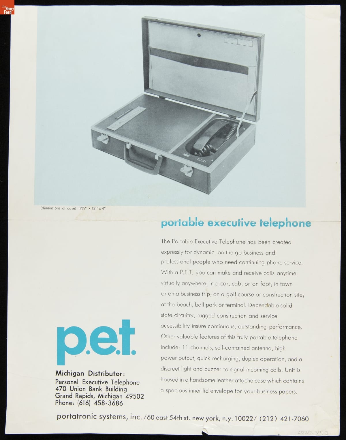 Portatronic Systems, Inc. Brochure, "P.E.T. - Portable Executive Telephone," circa 1968