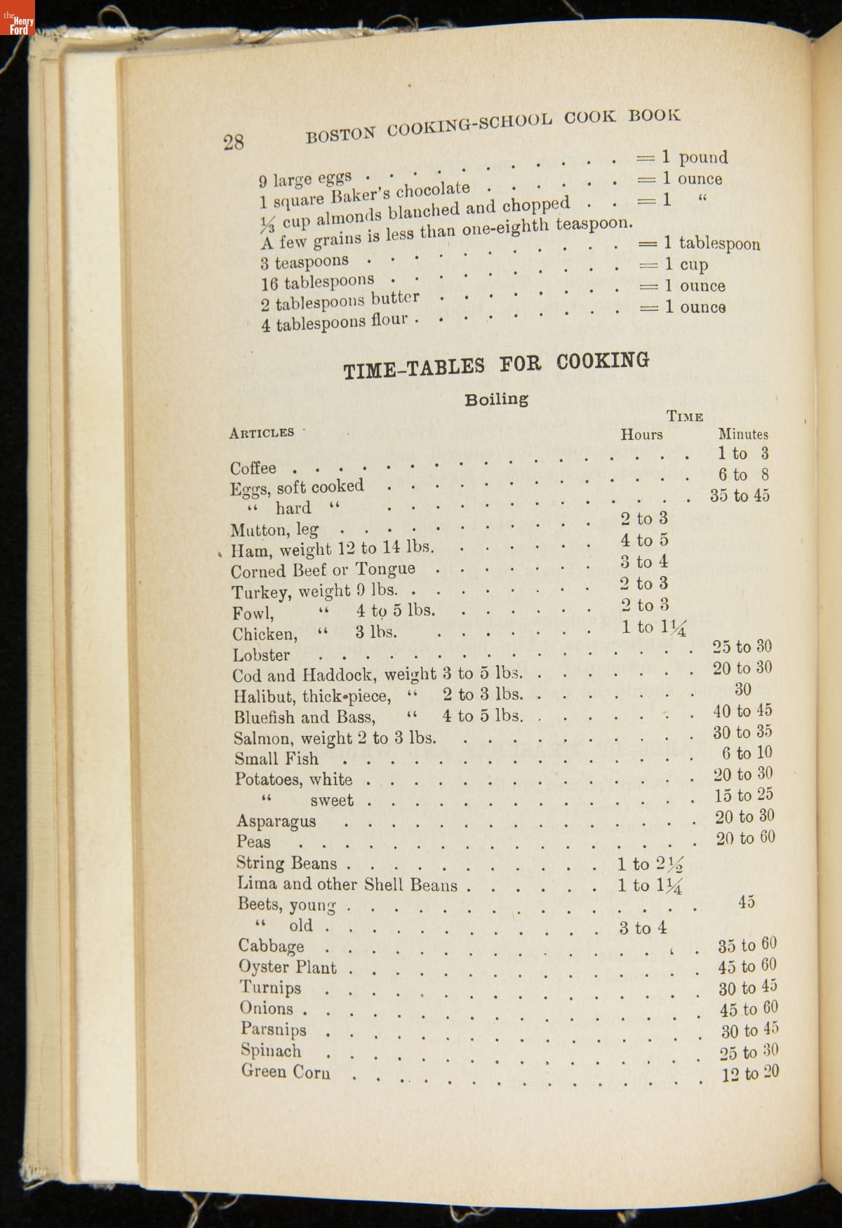 In 1896, Fannie Farmer, a teacher at the Boston Cooking School, wrote her well-organized cookbook in easy to understand language. Women loved this book, which became one of the best-selling cookbooks of all times.