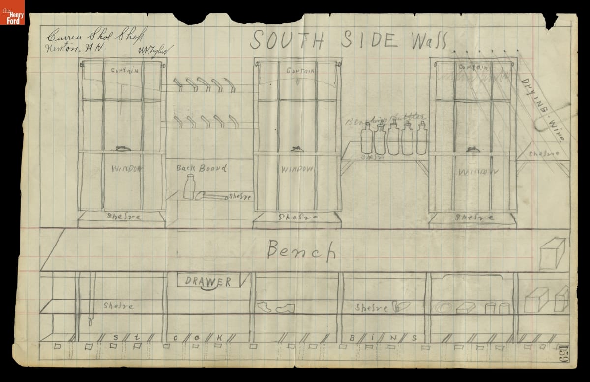 Drawing of the Layout of the South Wall of Currier Shoe Shop, circa 1930