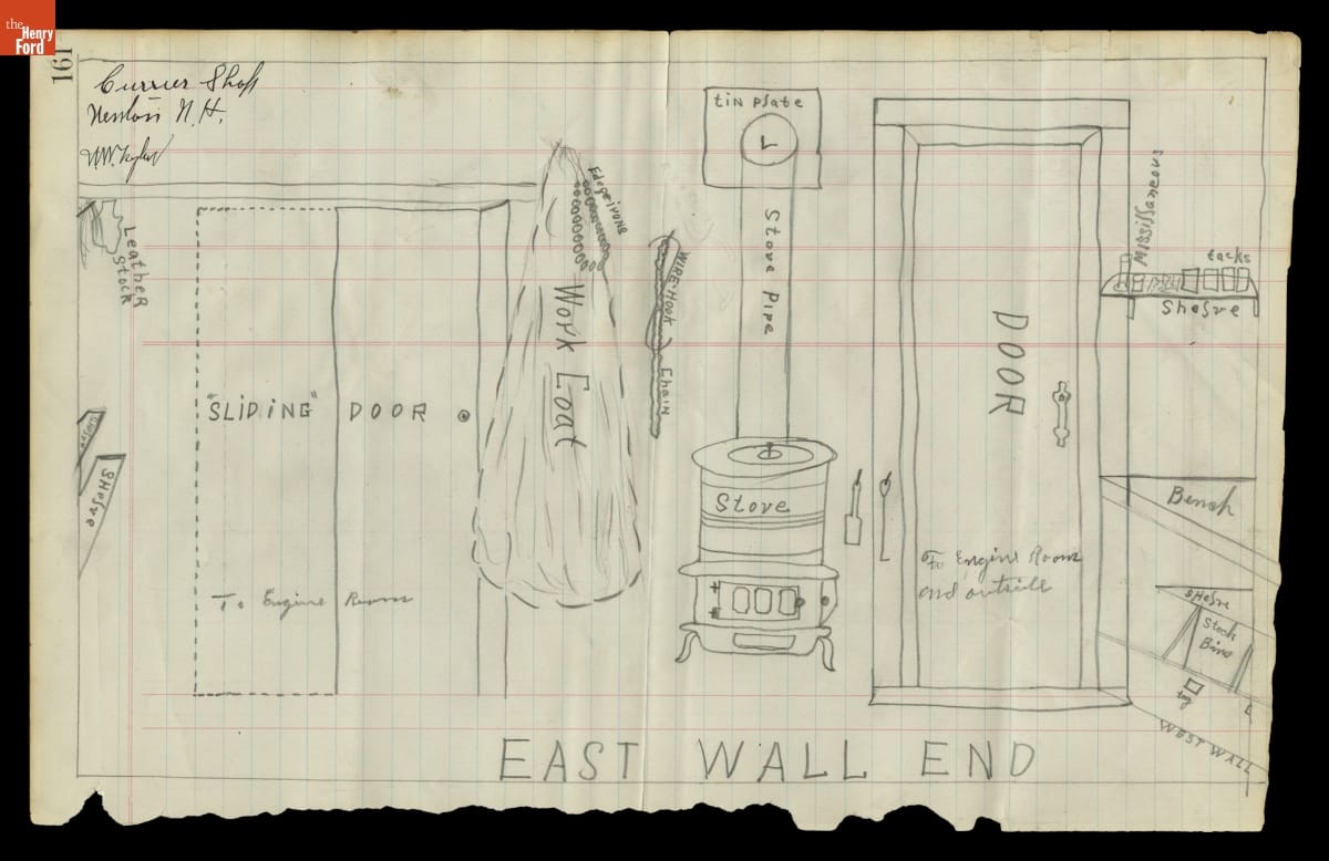 Drawing of the Layout of the East Wall of Currier Shoe Shop, circa 1930