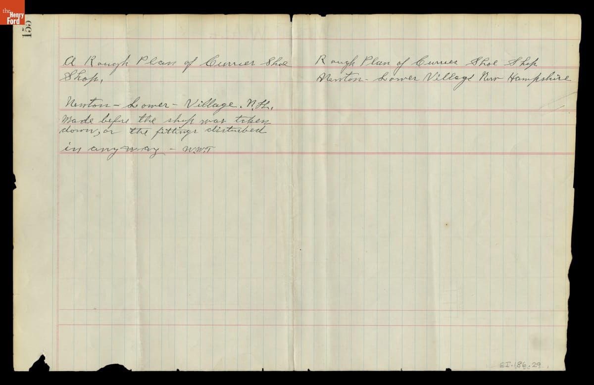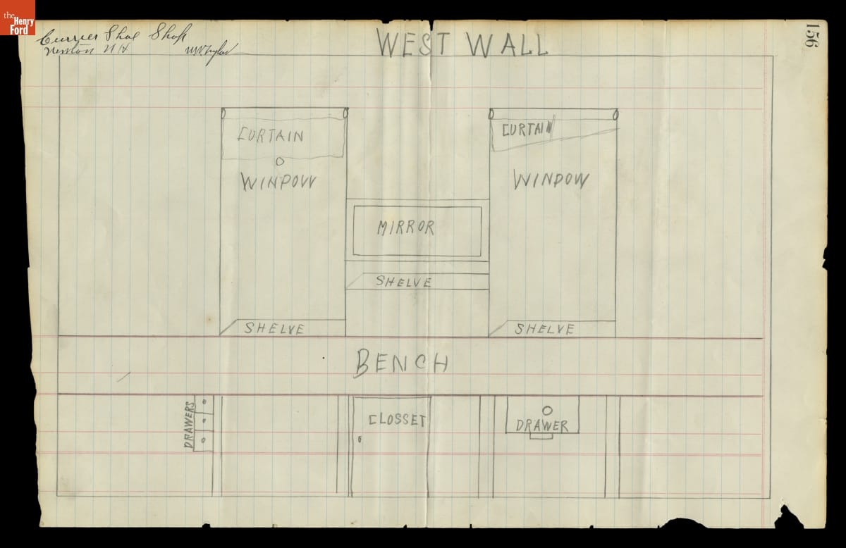 Drawing of the Layout of the West Wall of Currier Shoe Shop, circa 1930