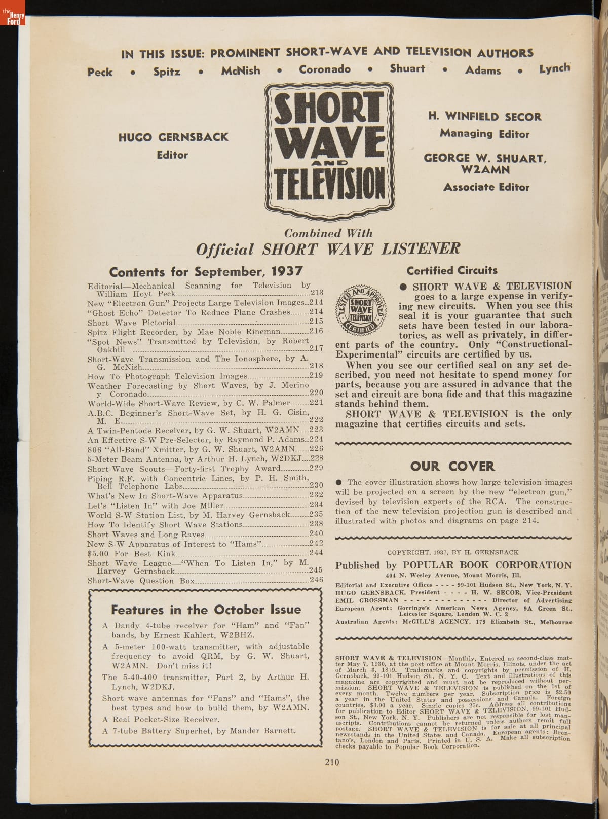 Hugo Gernsback was the publisher of the first science fiction and radio electronics magazines. Short Wave & Television (originally titled Short Wave Craft) was a specialty title aimed at amateur radio enthusiasts. These "home experimenter" magazines had a strong DIY ethic, providing information and resources for people eager to build, understand, and experiment with new technologies