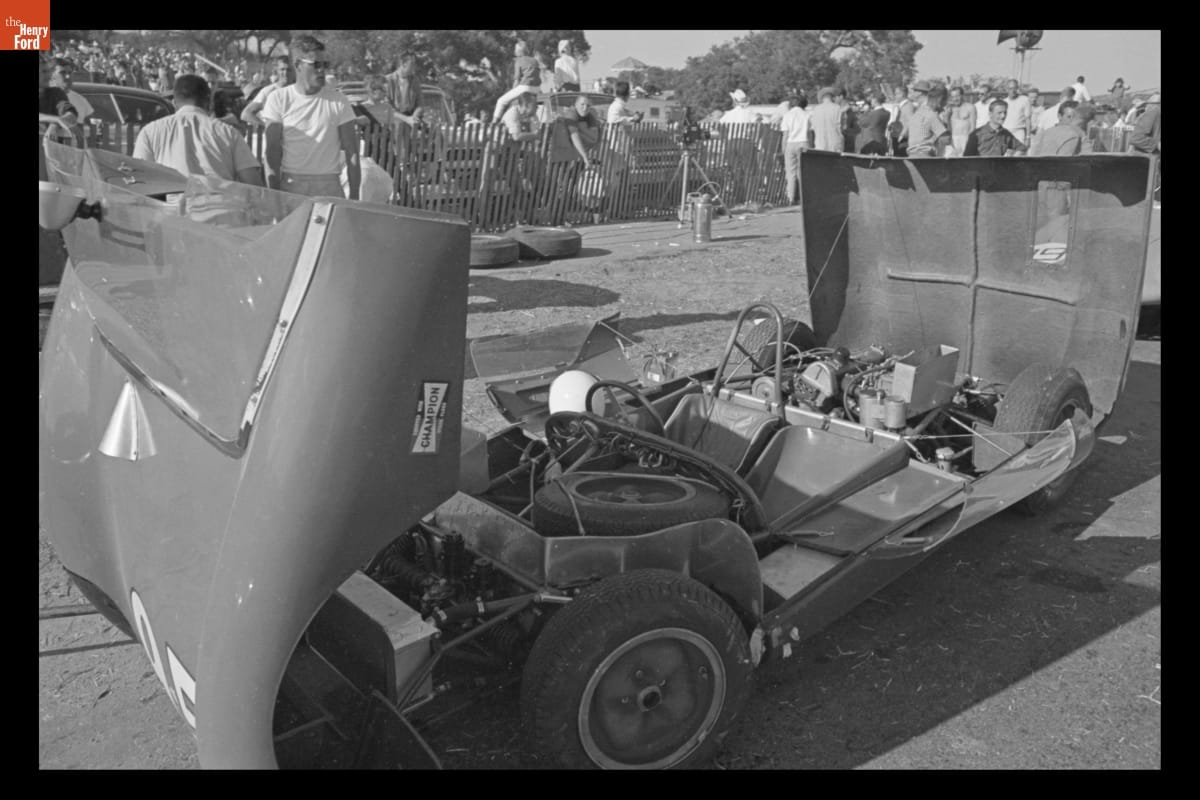 Dave Friedman has captured and preserved auto racing history through his photography. His work -- and his collection of works by other photographers -- documents key races, vehicles, drivers, and teams. This photograph was taken at the 1962 Pacific Grand Prix held at the Laguna Seca Raceway in Monterey, California. Roger Penske, who later enjoyed even greater success as a race team owner, drove to victory.