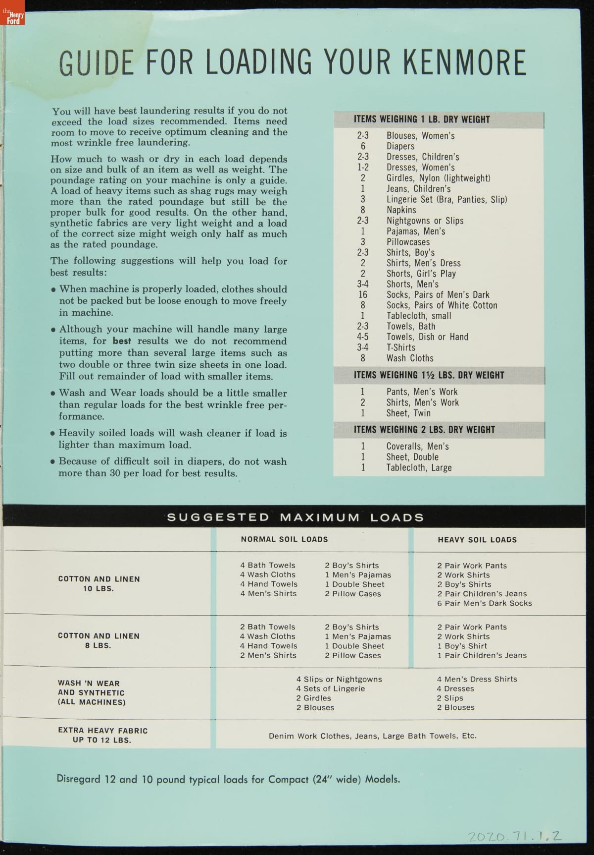 Owner's Manual: How to Use and Enjoy Your New Kenmore Automatic Washer, 1964