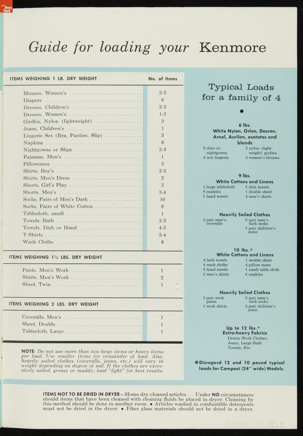 Owner's Manual: How to Use and Enjoy Your New Kenmore Automatic Dryer, 1964