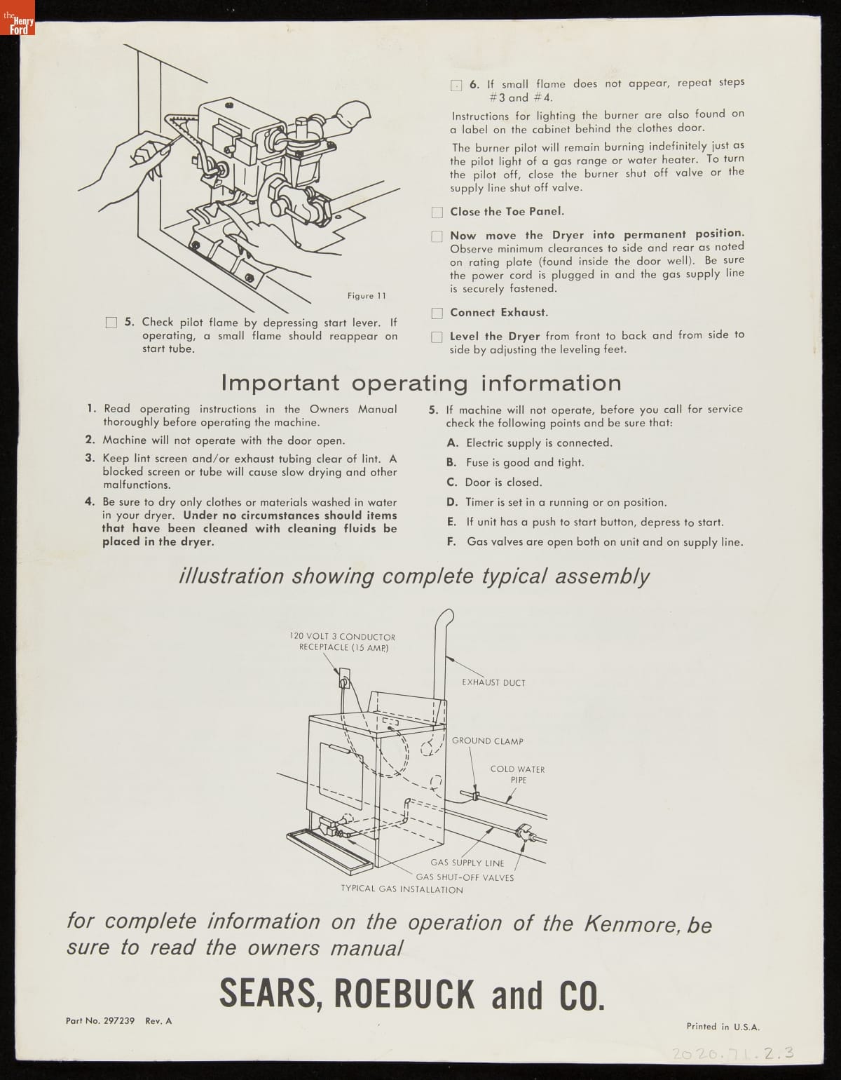 How to Install Your New Kenmore Automatic Gas Dryer, 1964
