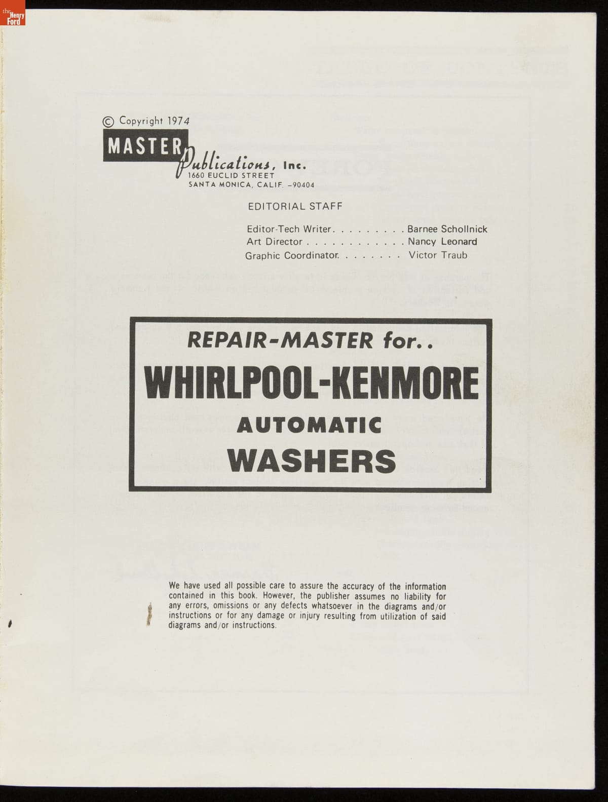 Repair-Master for Whirlpool-Kenmore Automatic Washers, 1974