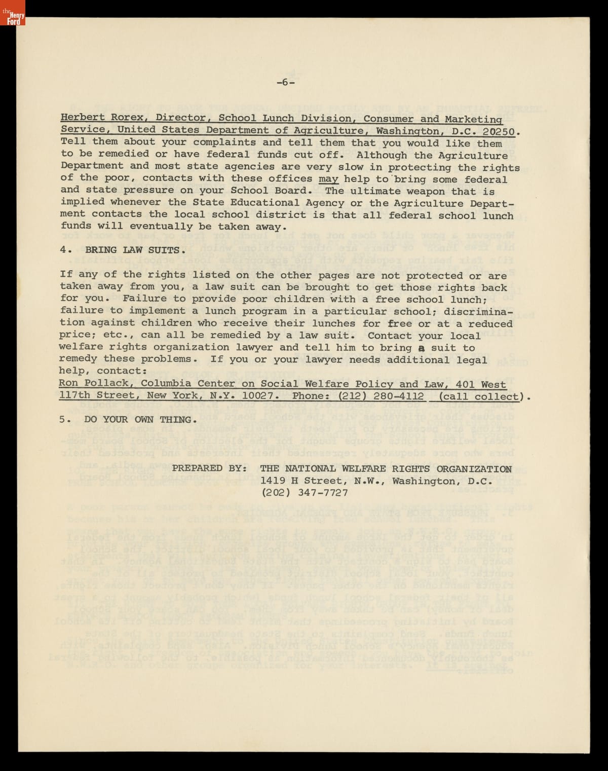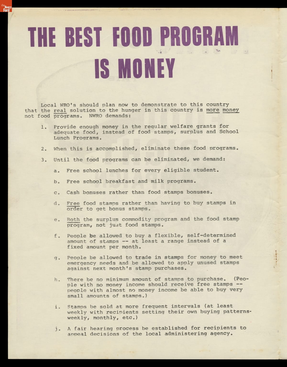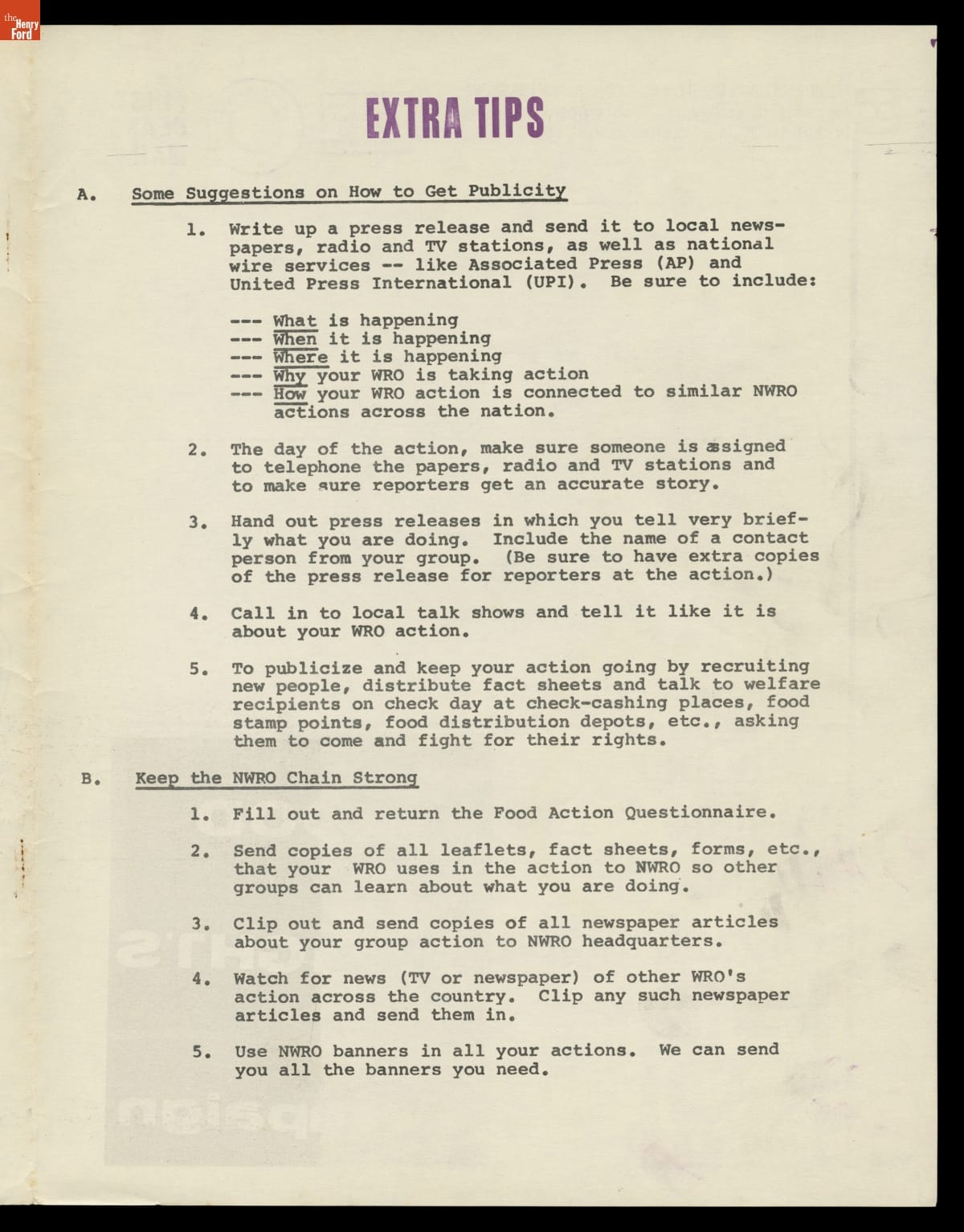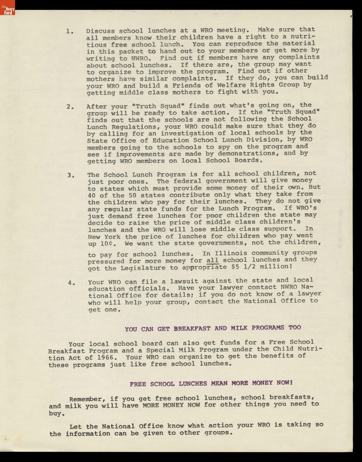 Information Packet, National Welfare Rights Organization Food Rights Campaign, circa 1974