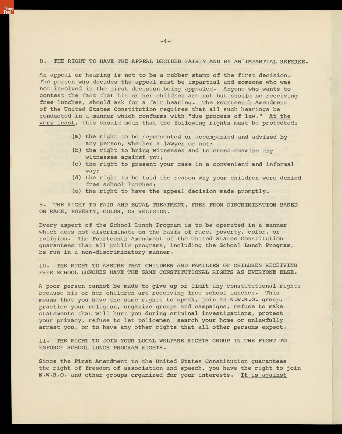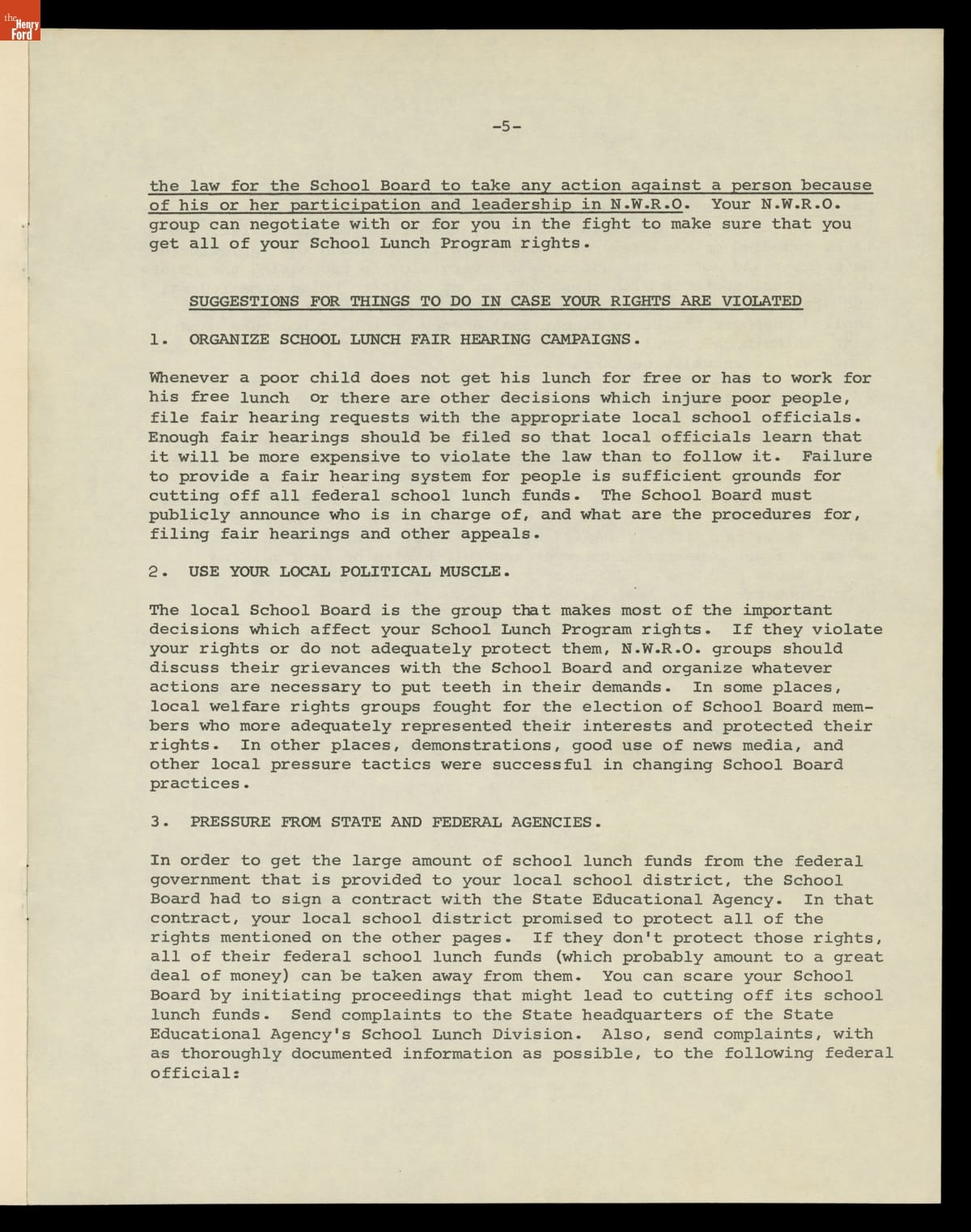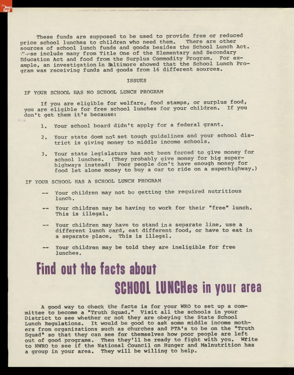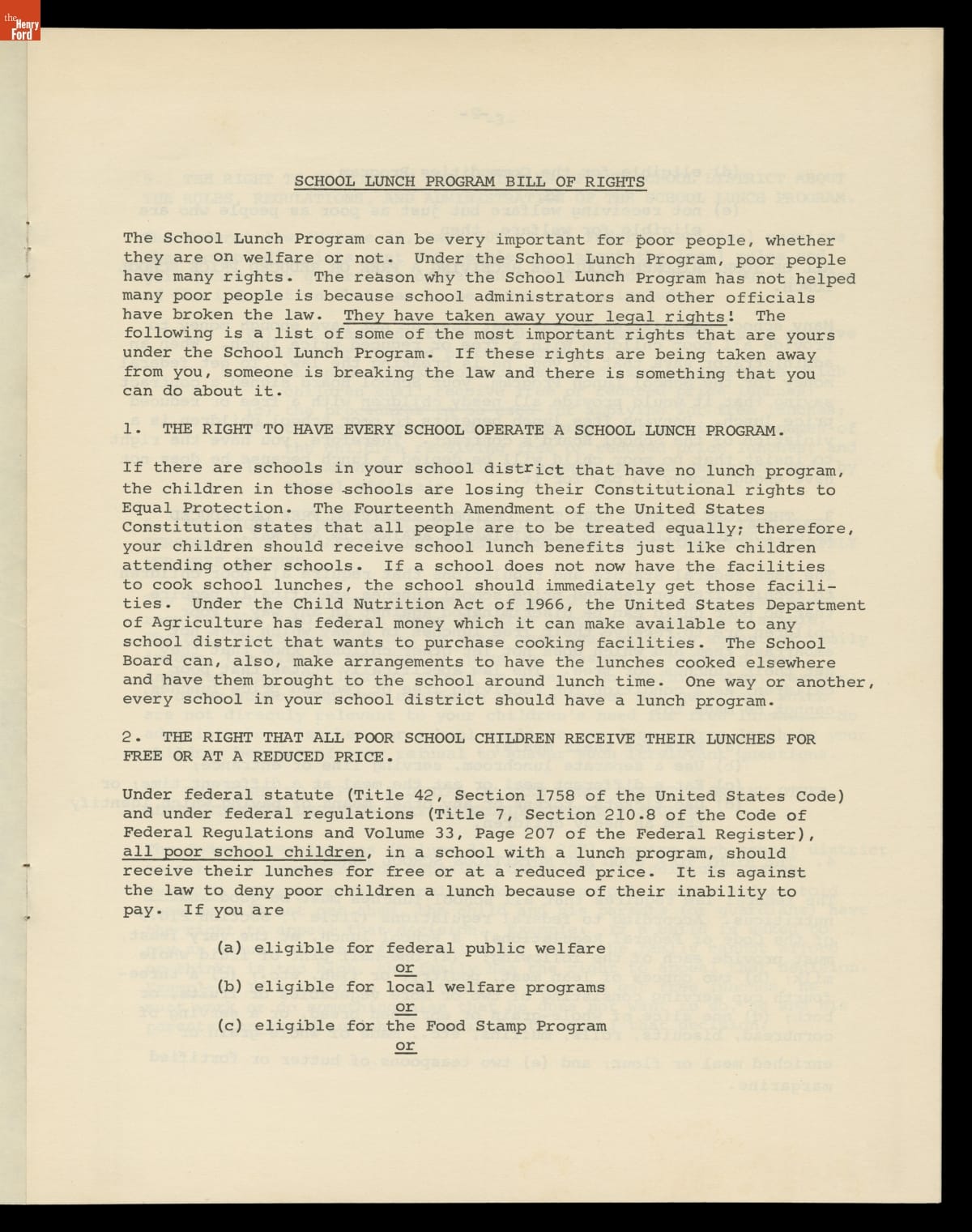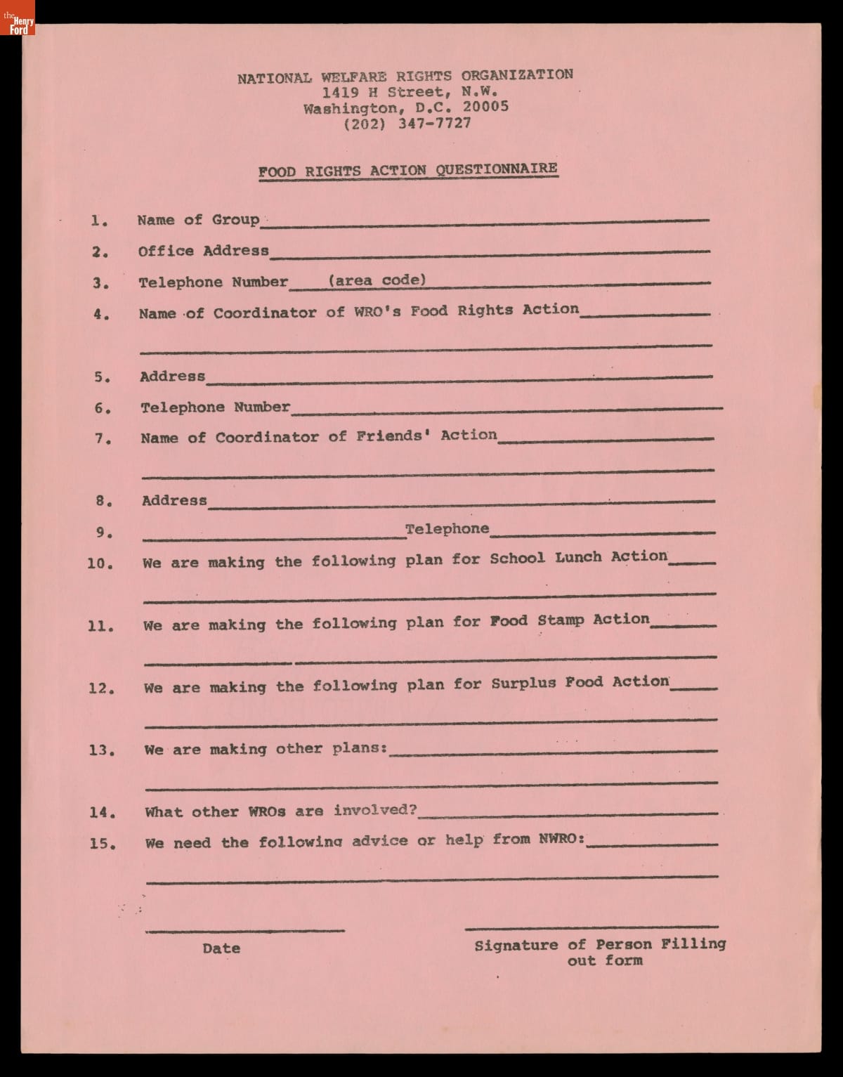 Information Packet, National Welfare Rights Organization Food Rights Campaign, circa 1974