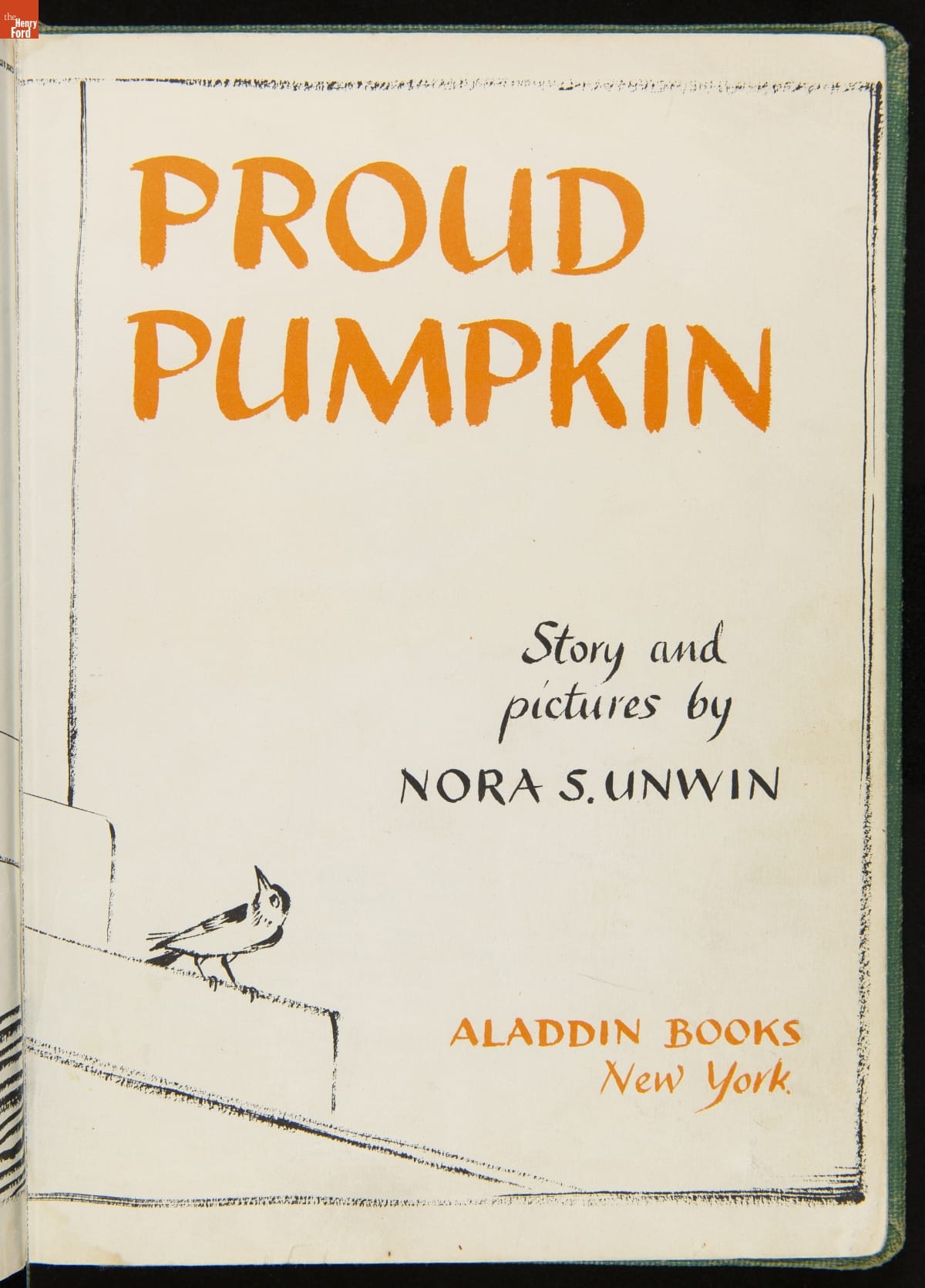 Nora S. Unwin (1907-1982) wrote and illustrated Proud Pumpkin in 1953. It tells the story of a pumpkin with a high opinion of itself. Not content to be used for pies, the proud pumpkin becomes a jack-o'-lantern for Halloween. Afterward--discarded, decaying, and alone--the pumpkin finds hope only when a chipmunk makes his collapsed shell its home for the winter.