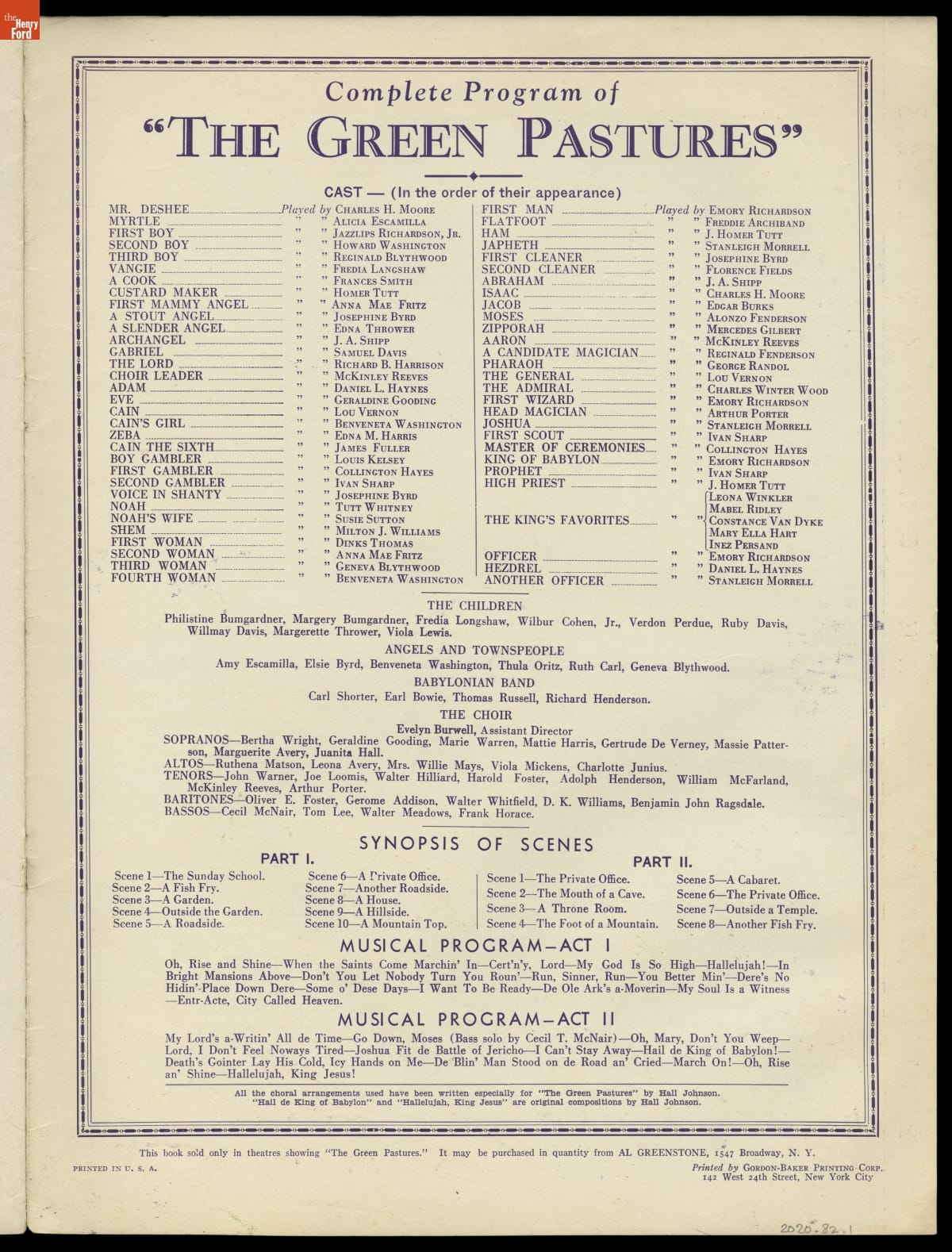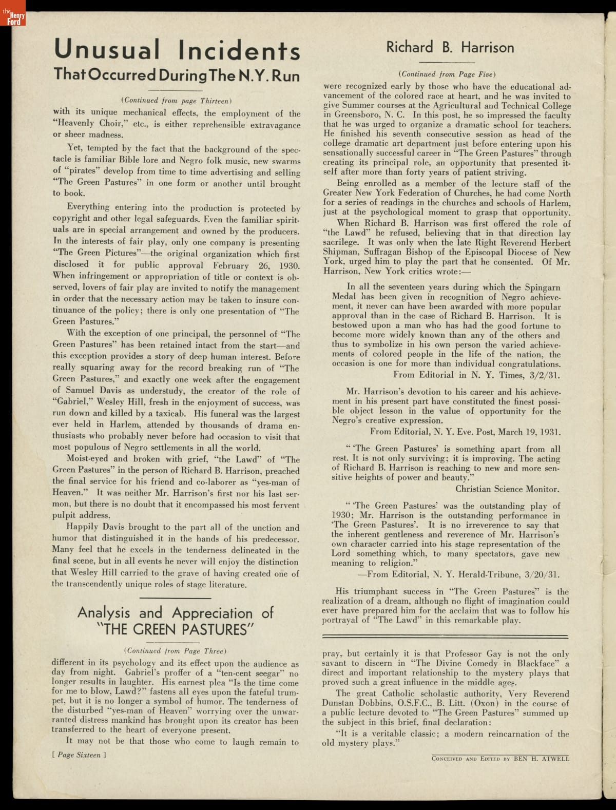 Souvenir Theater Program for "The Green Pastures," 1931