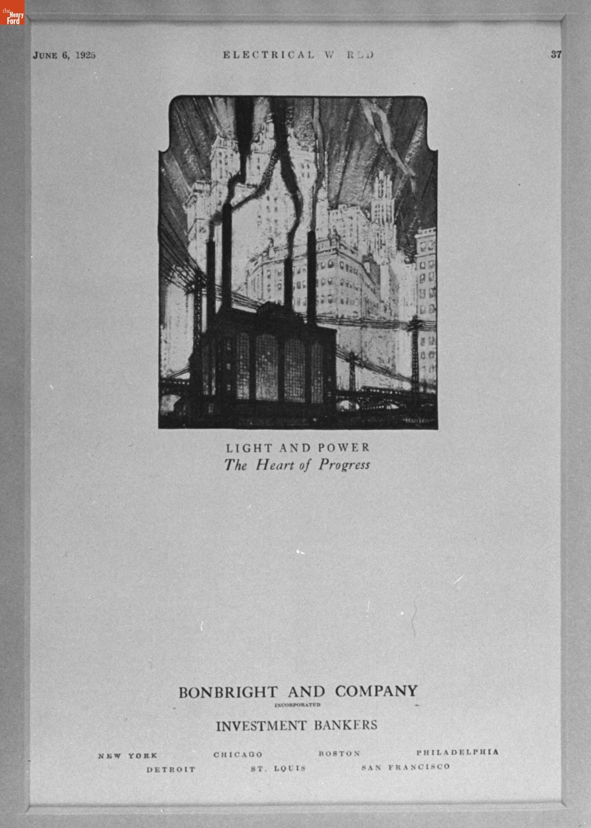 Bonbright and Company Advertisement, "Light and Power, The Heart of Progress," June 6, 1925