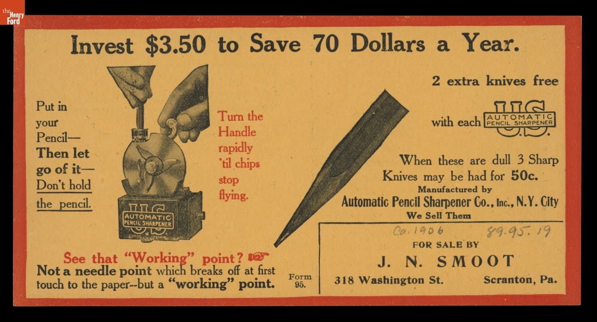 U.S. Automatic Pencil Sharpener, circa 1906