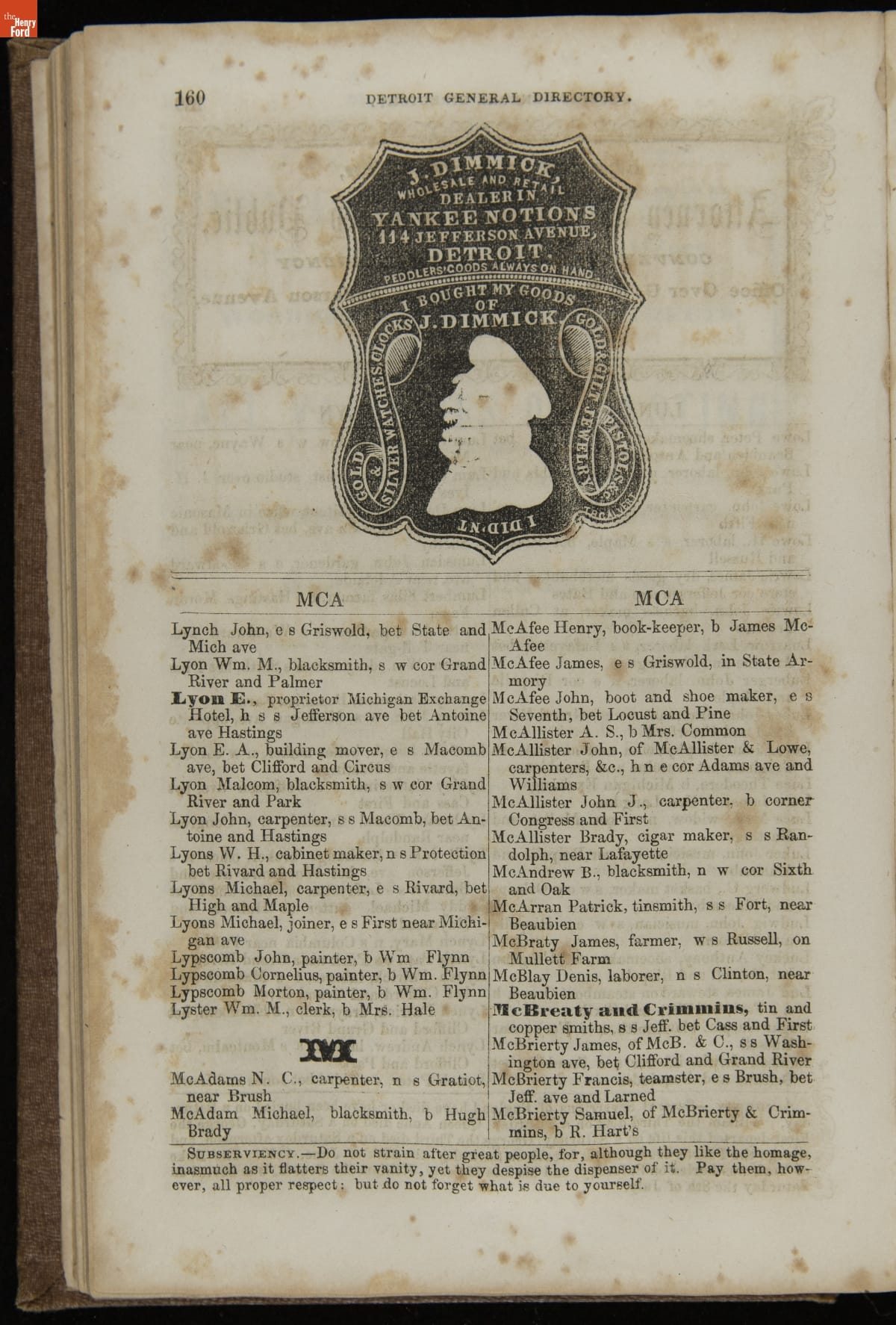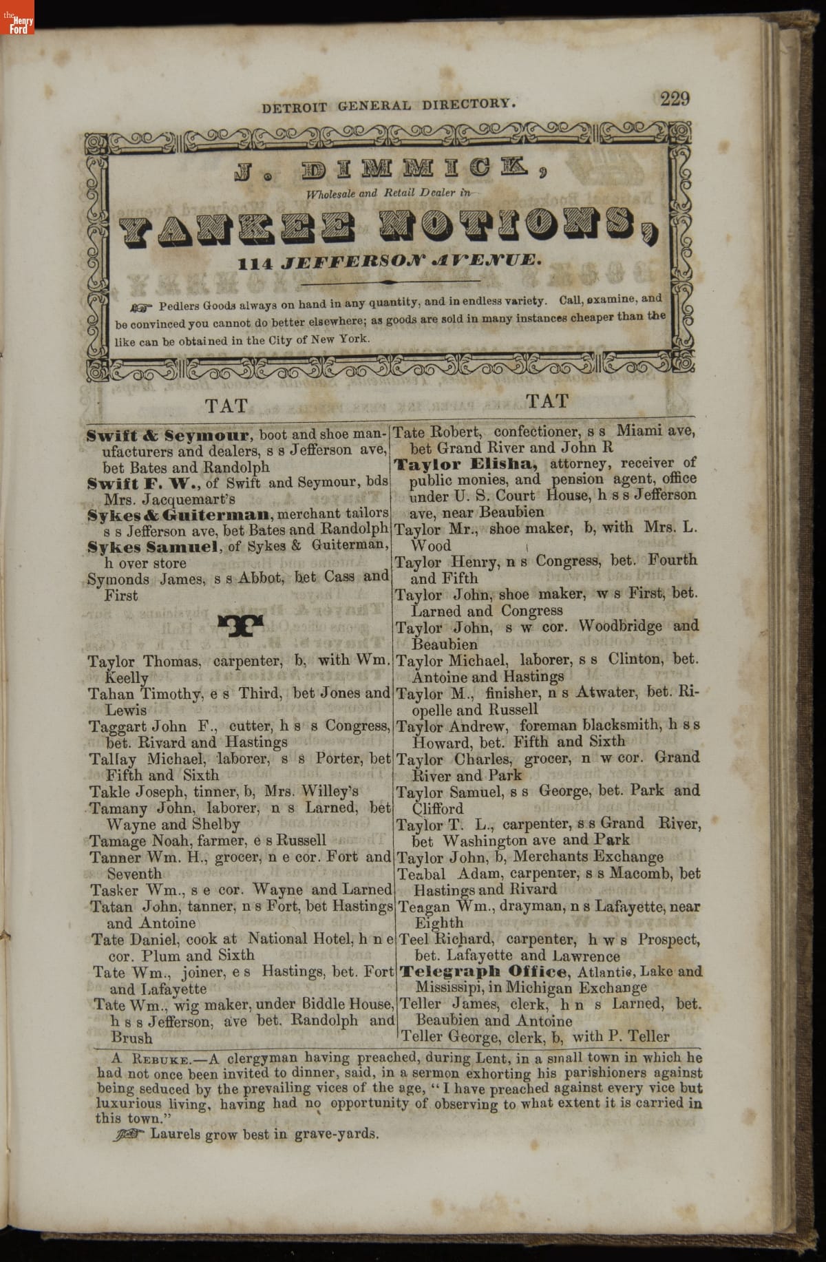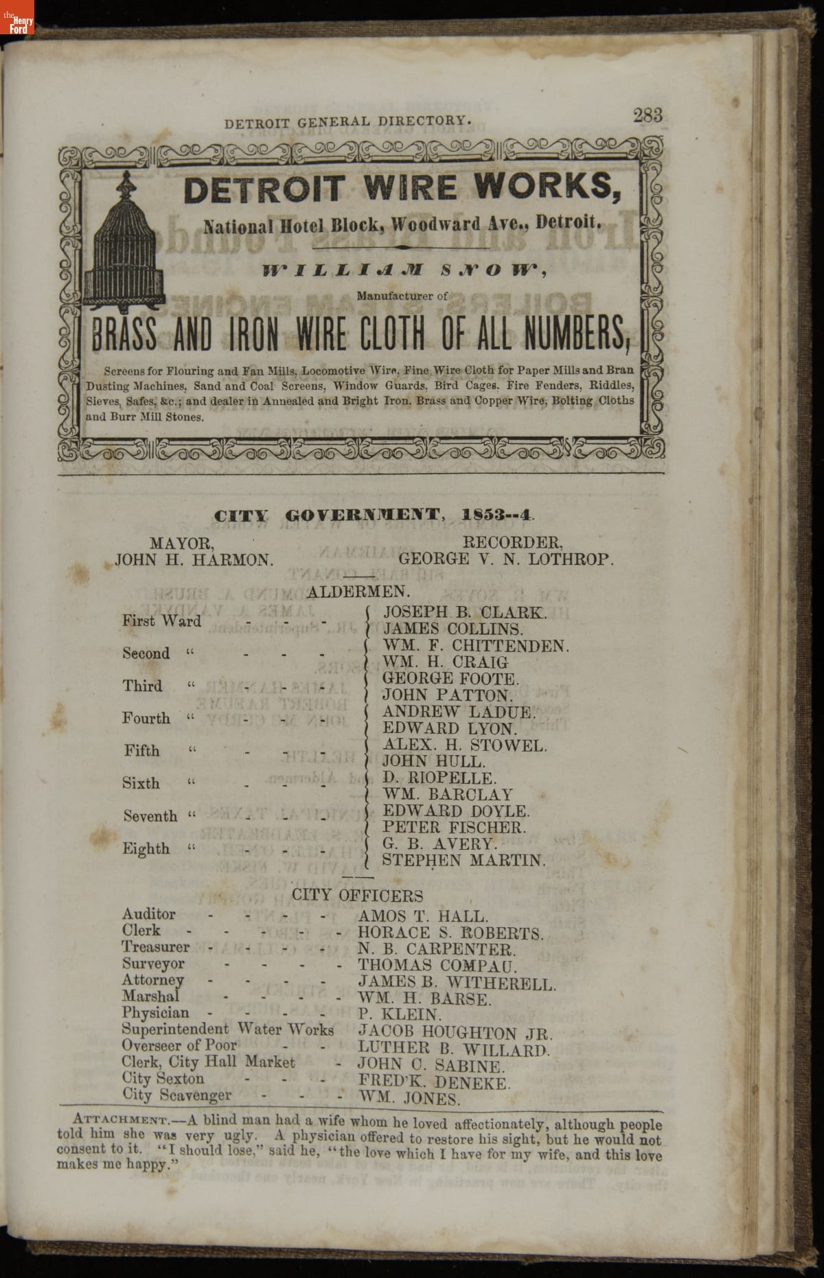 J.D. Johnston's Detroit City Directory and Business Advertiser for 1853-1854