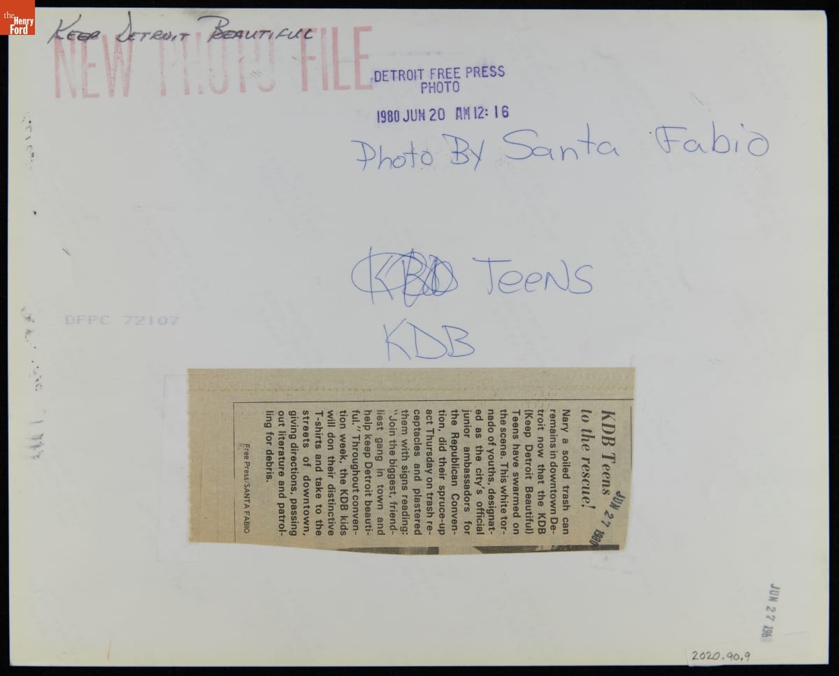 "Keep Detroit Beautiful" Teens Cleaning Up the City, June 1980