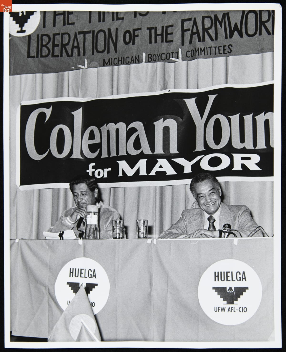 Cesar Chavez and Coleman Young in Detroit, circa 1973
