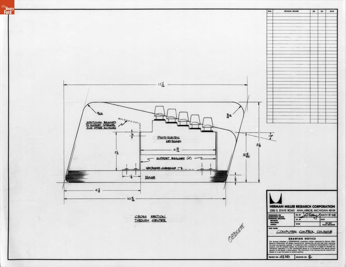Technical Drawing, "Action Office System Computer Control Console," November 5, 1968