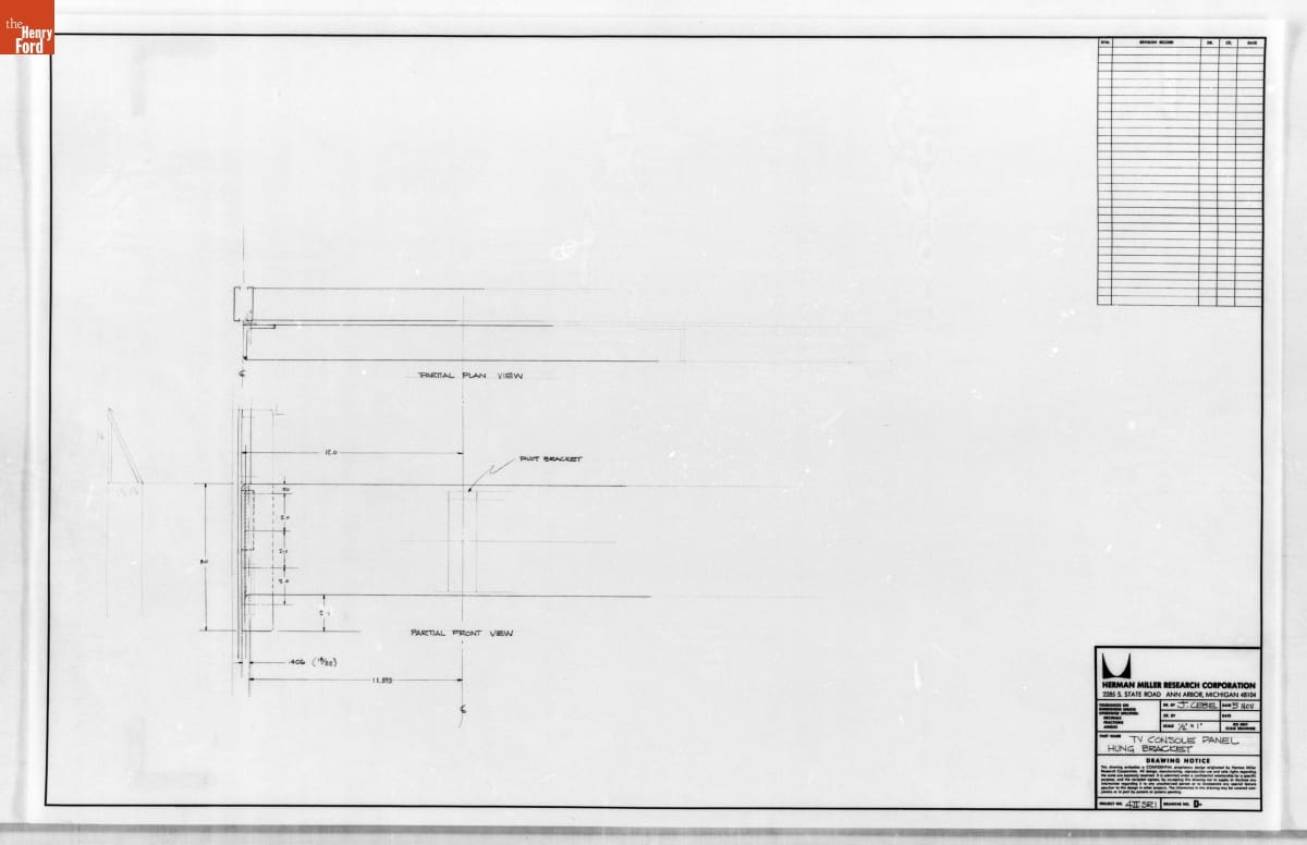 Technical Drawing, "Action Office System TV Console Panel Hung Bracket," November 5, 1968