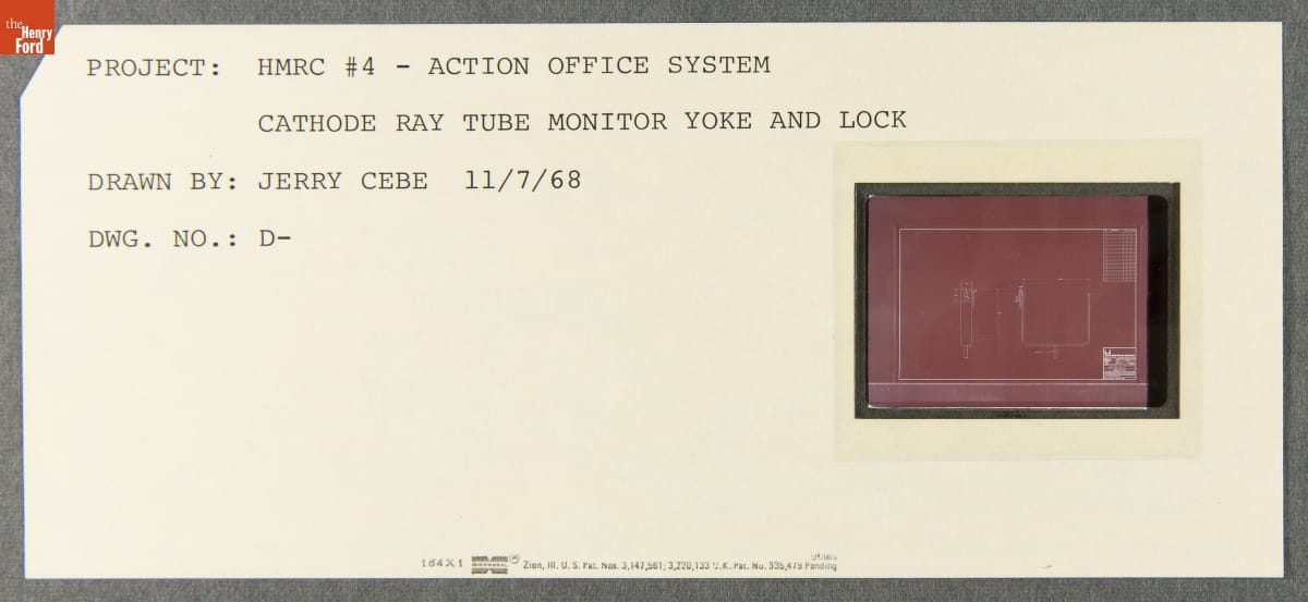 Technical Drawing, "Action Office System Cathode Ray Tube Monitor Yoke and Lock," November 7, 1968