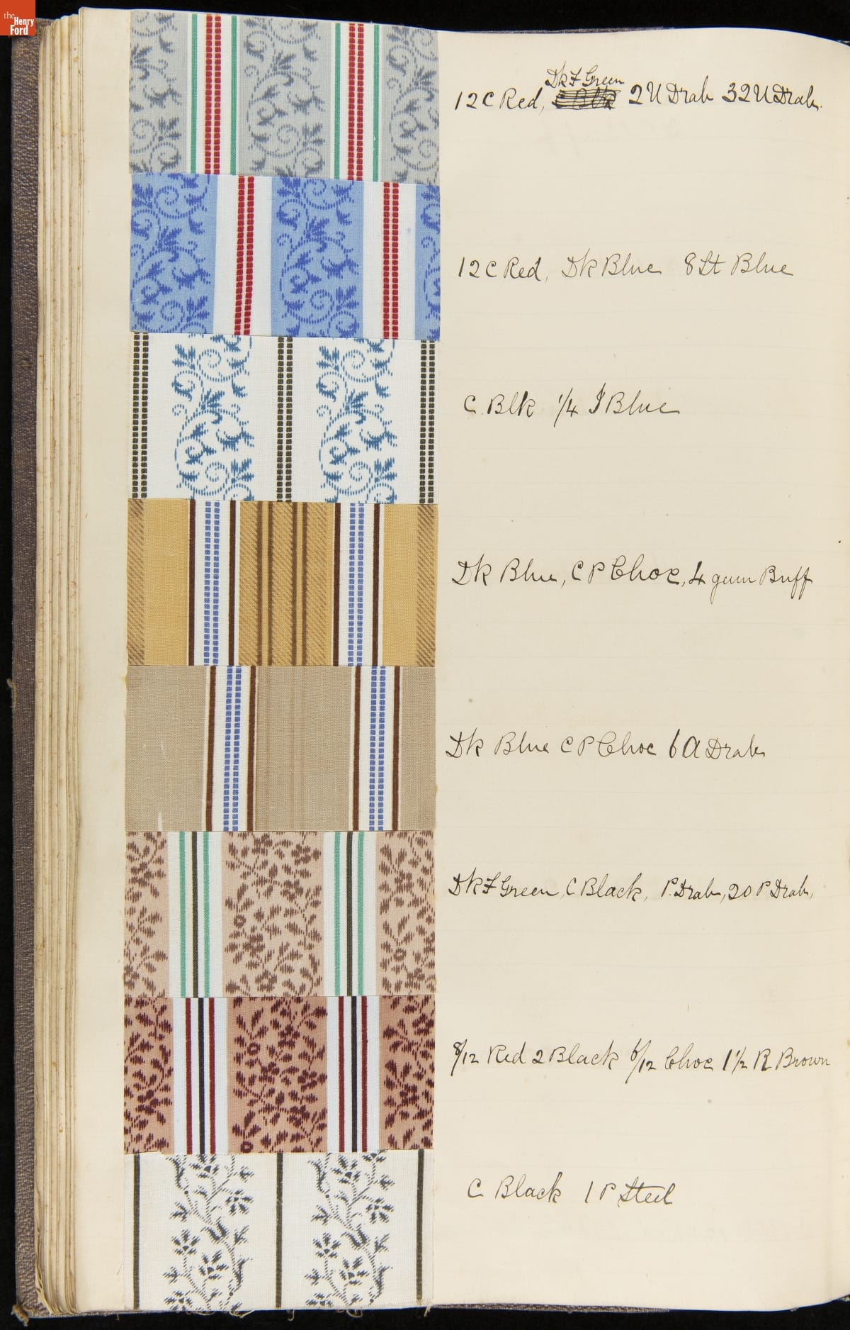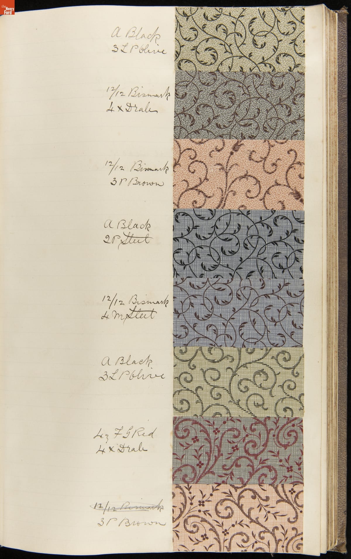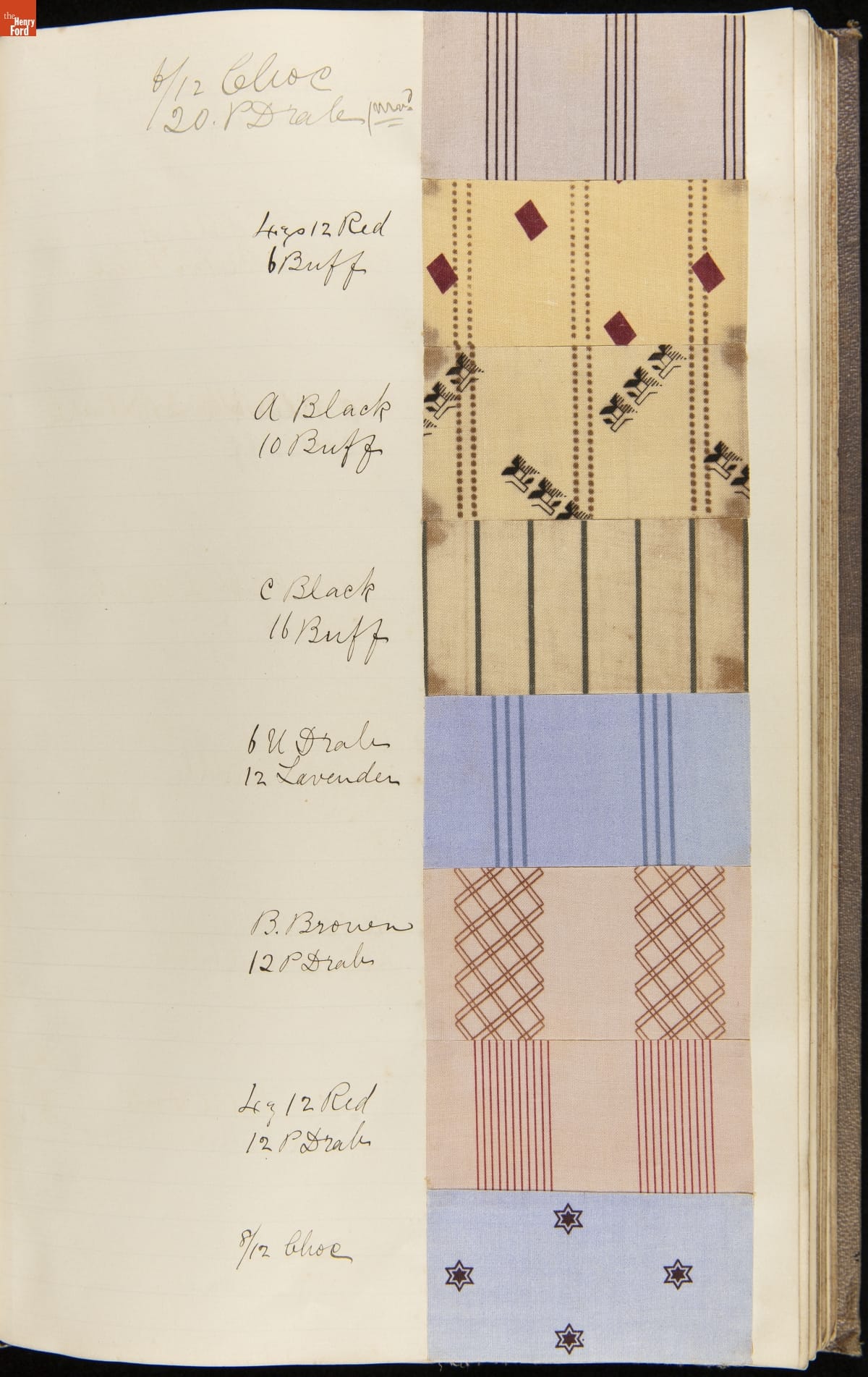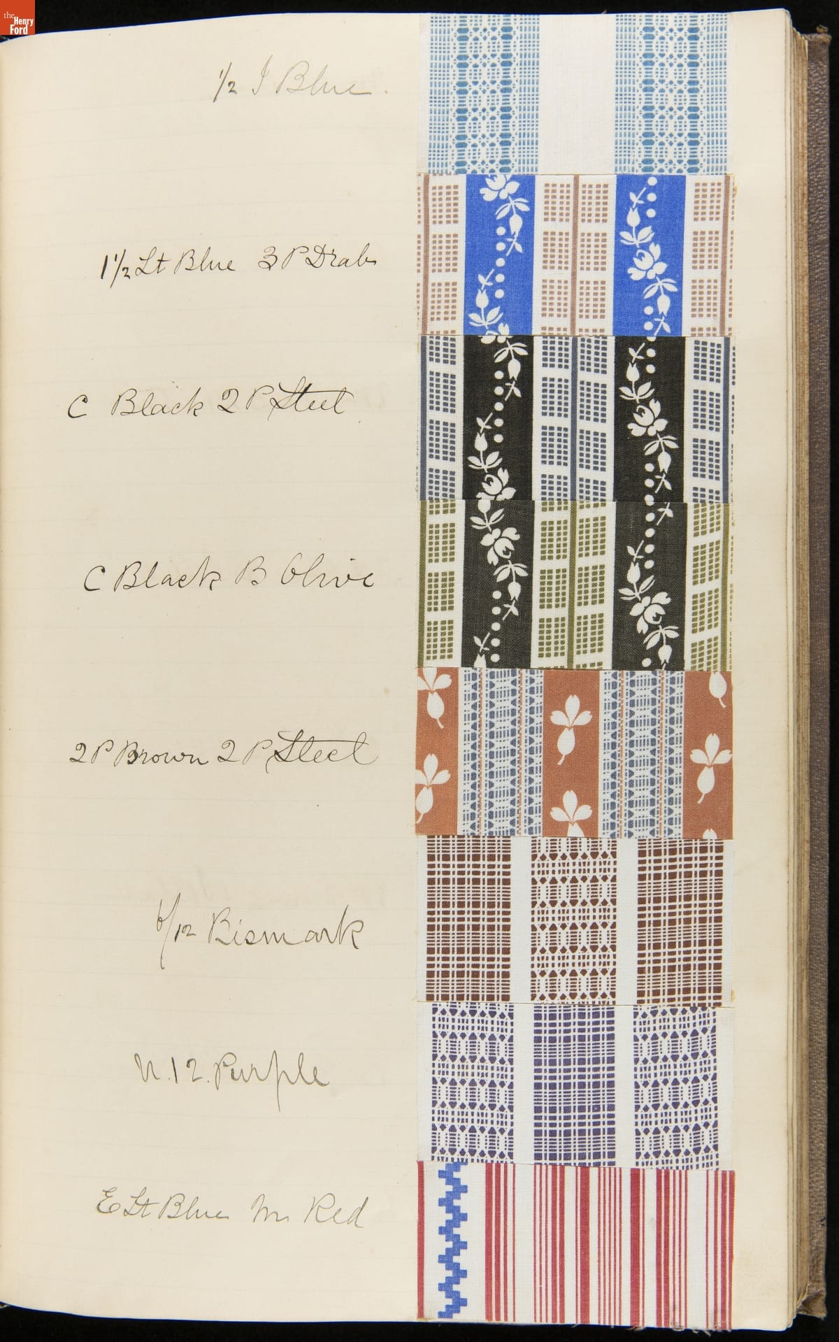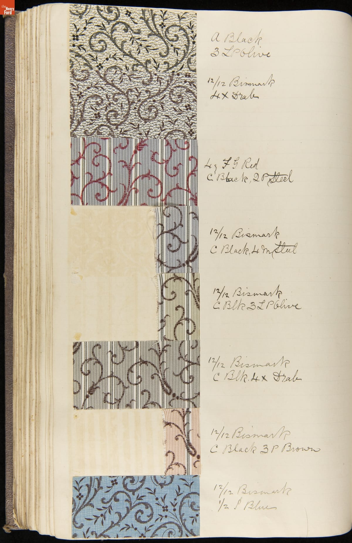 Textile samples notebook created by Washington Anderton for Cocheco Manufacturing Company, Lawrence, Massachusetts.