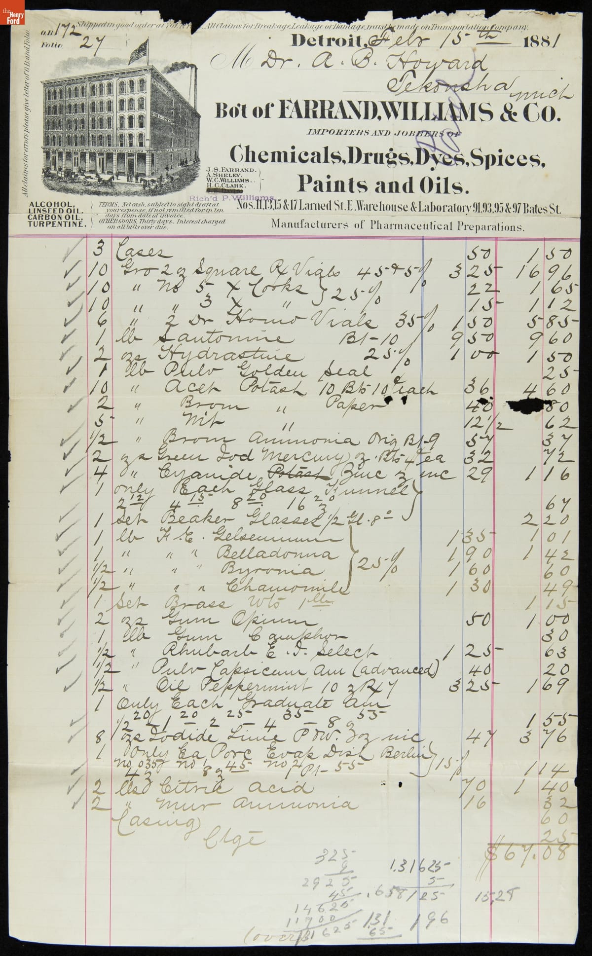 Invoice from Farrand, Williams & Co., February 15, 1881