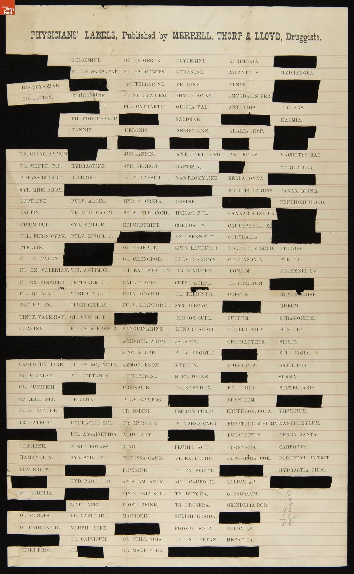 Sheet of Physician's Labels for Botanical Medications, 1877-1881