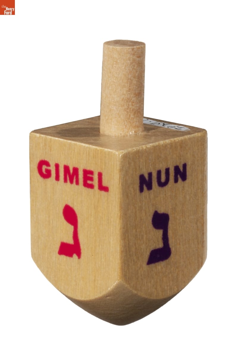 Hanukkah celebrates the 164 B.C.E. victory of a small rebel army, the Maccabees, over the Jews' Syrian-Greek oppressors and the miracle of a small amount of oil lasting for eight days as it burned in the defiled temple's lampstand. Spinning the dreidel, a four-sided top with a Hebrew letter on each side, is a traditional Hanukkah children's game.
