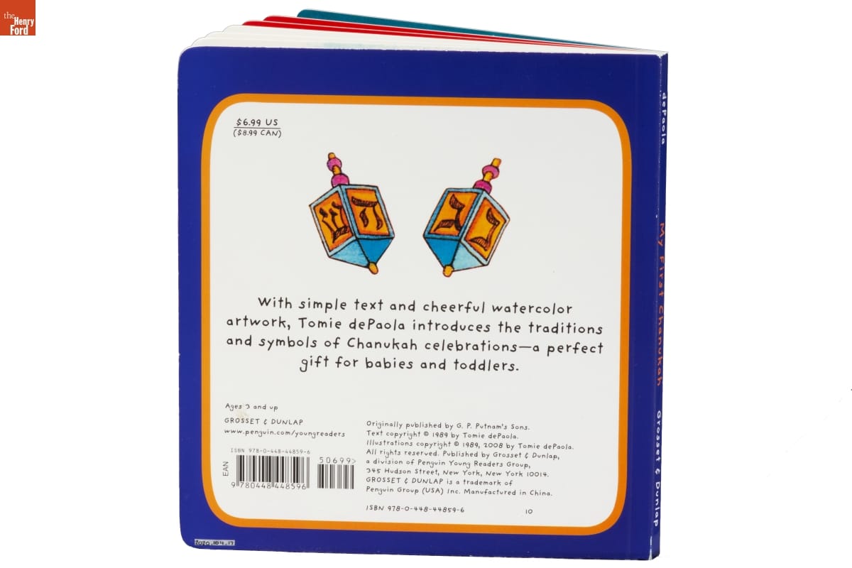 Hanukkah (also spelled Chanukah) celebrates the 164 B.C.E. victory of a small rebel army, the Maccabees, over the Jews' Syrian-Greek oppressors and the miracle of a small amount of oil lasting for eight days as it burned in the defiled temple's lampstand. This book helps introduce Hanukkah symbols and traditions to babies and toddlers.