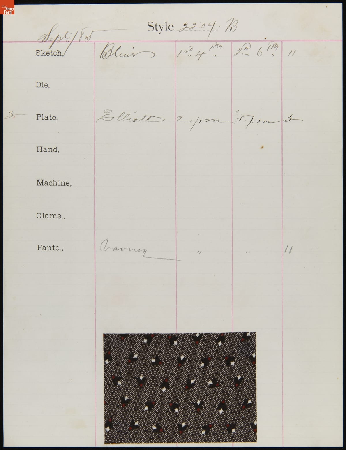 Engraver Sheet for Textile Fabric Style No. 2204 B, Cocheco Mfg. Co., September 1885