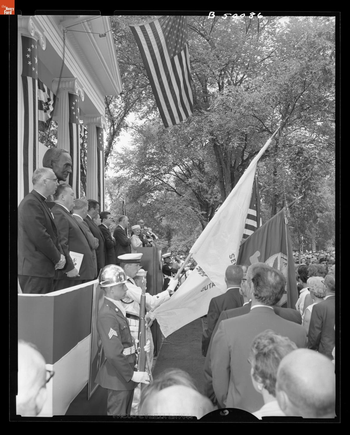 Rev. Walter J. Schoenherr Speaking at the Henry Ford Postage Stamp Dedication in Greenfield Village, July 30, 1968