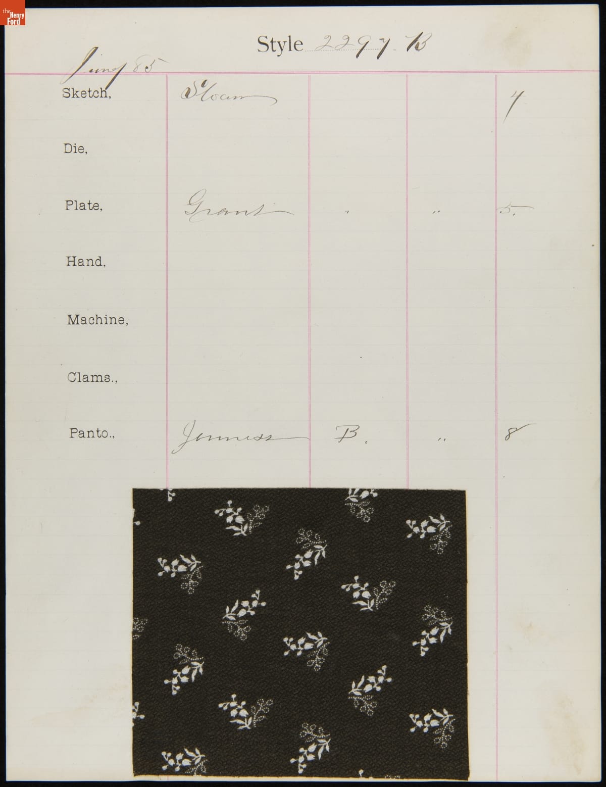 Engraver Sheet for Textile Fabric Style No. 2297 B, Cocheco Mfg. Co., June 1885