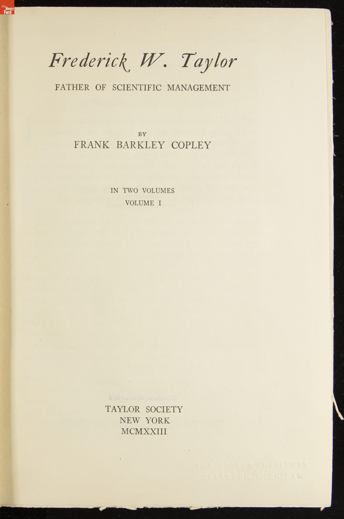 "Frederick W. Taylor, Father of Scientific Management," Volume 1, 1923