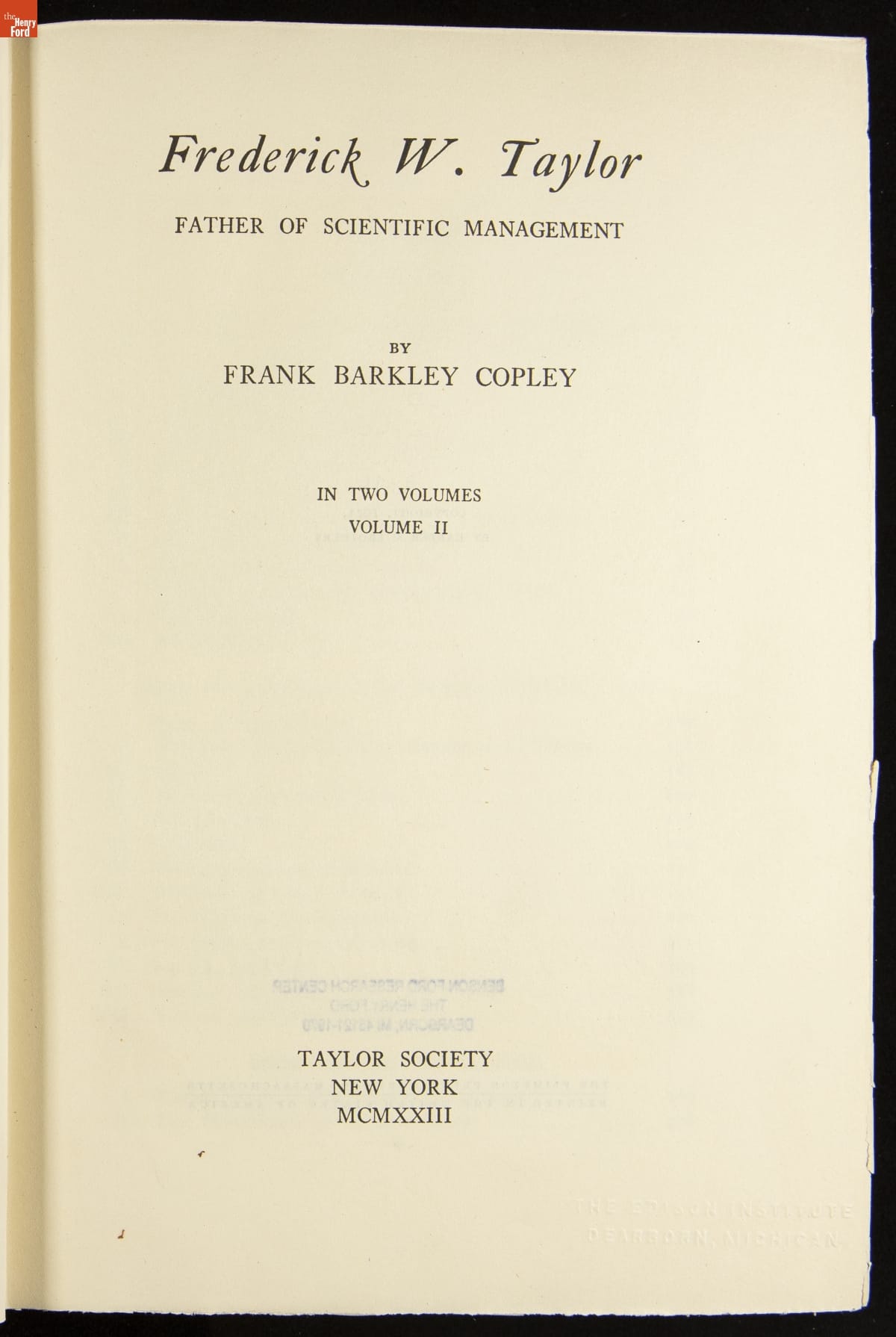 "Frederick W. Taylor, Father of Scientific Management," Volume 2, 1923