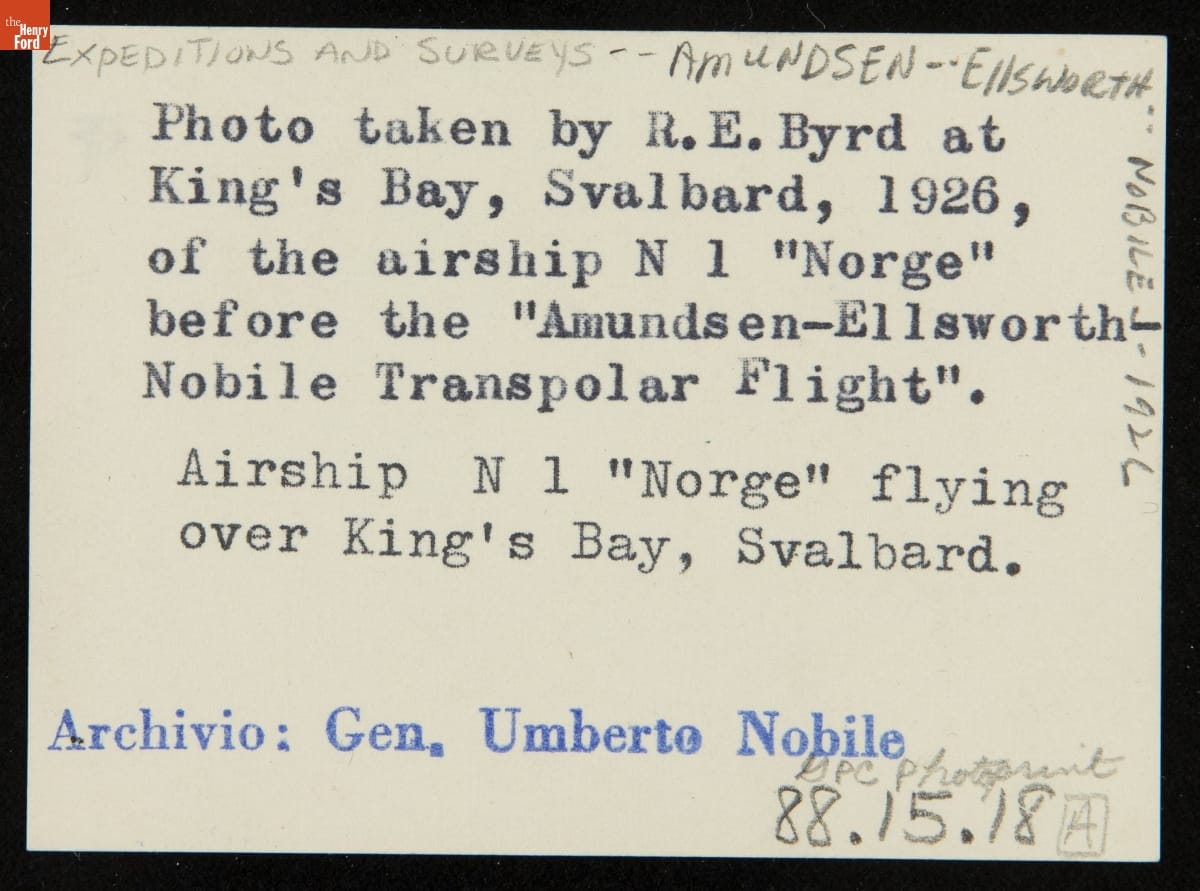 Airship "Norge" Flying over King's Bay, Svalbard, before the Amundsen-Ellsworth-Nobile Transpolar Flight, May 1926
