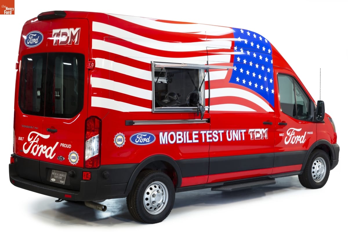 In spring 2020, early in America's COVID-19 pandemic, Ford Motor Company and Troy Design & Manufacturing converted four Ford Transit vans into mobile test units. The vehicles collected genetic samples in the field and transported them to labs for testing. Free tests were given to first responders, nursing home residents, and people at substance abuse centers and community shelters in Michigan.