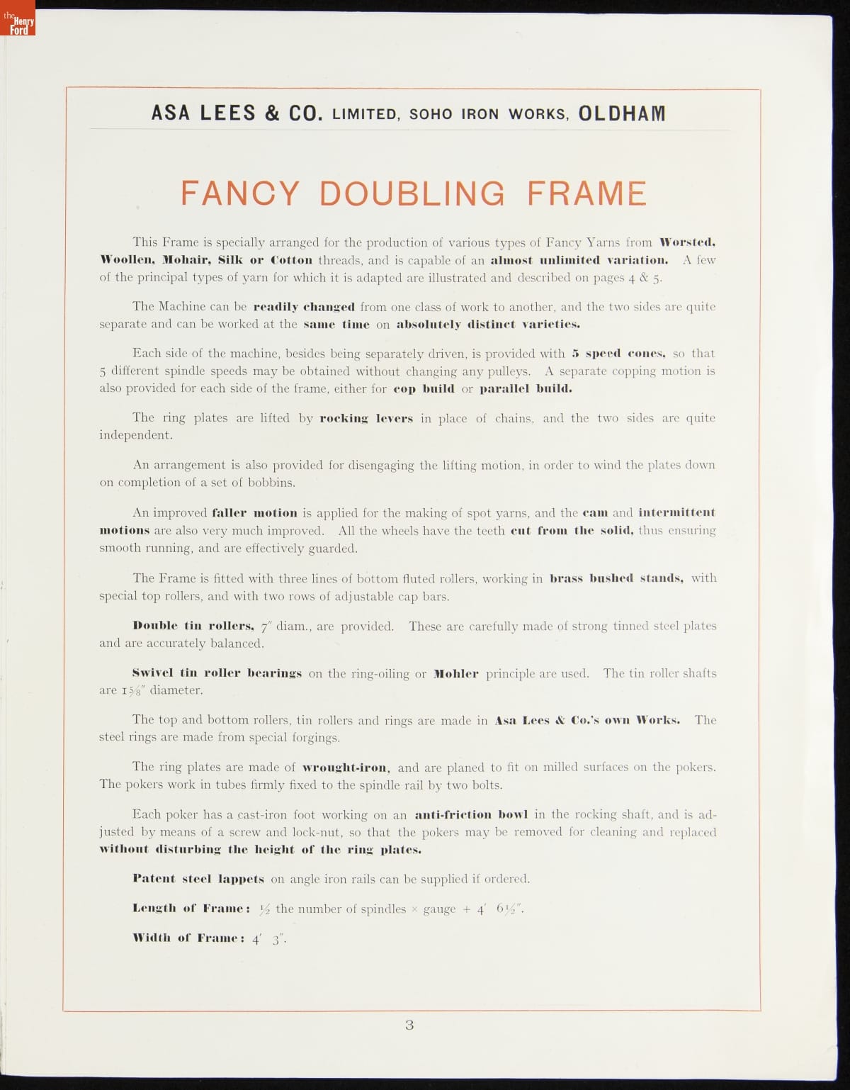 Asa Lees & Co. Trade Catalog, "Improved Fancy Doubling Frame," circa 1910