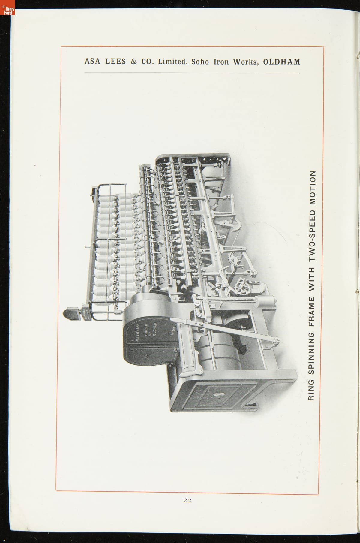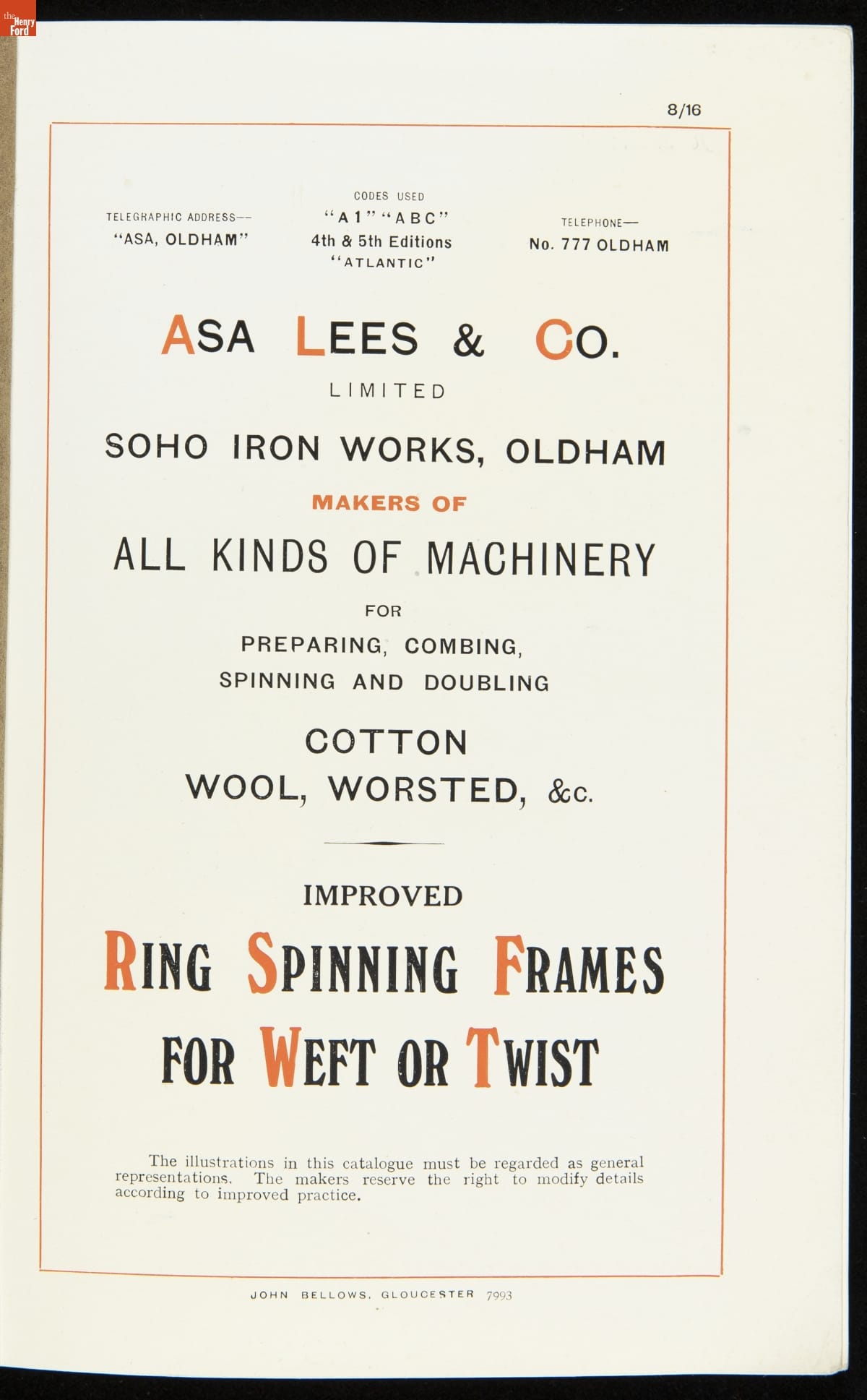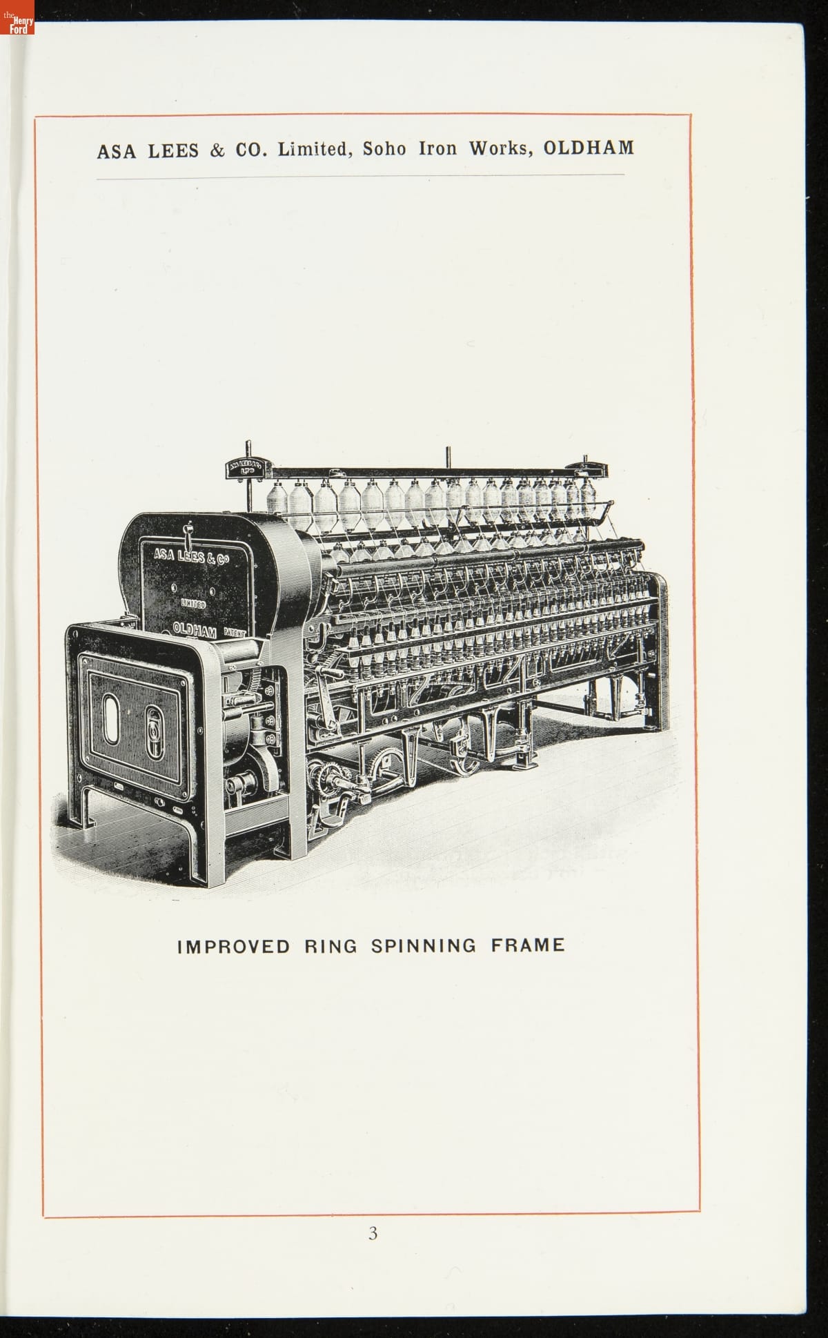 Asa Lees & Co. Trade Catalog, "Improved Ring Spinning Frames for Weft or Twist," 1916