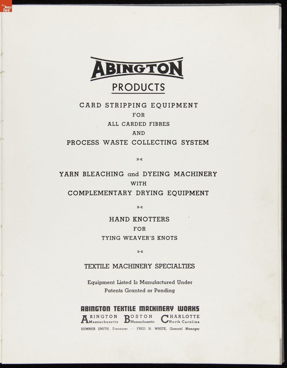 THF621320 / Abington Textile Machinery Works Trade Catalog, "Vacuum Card Stripper and Waste Collecting System," 1920-1929 / front cover